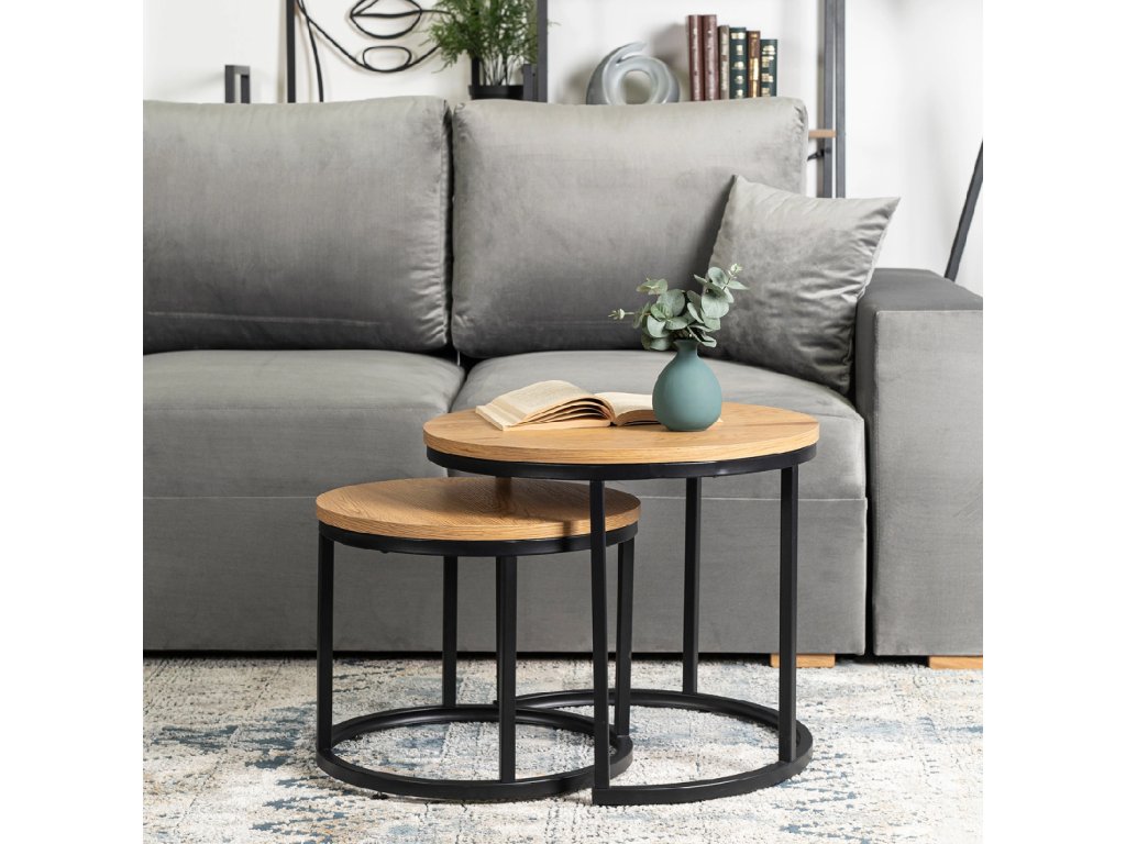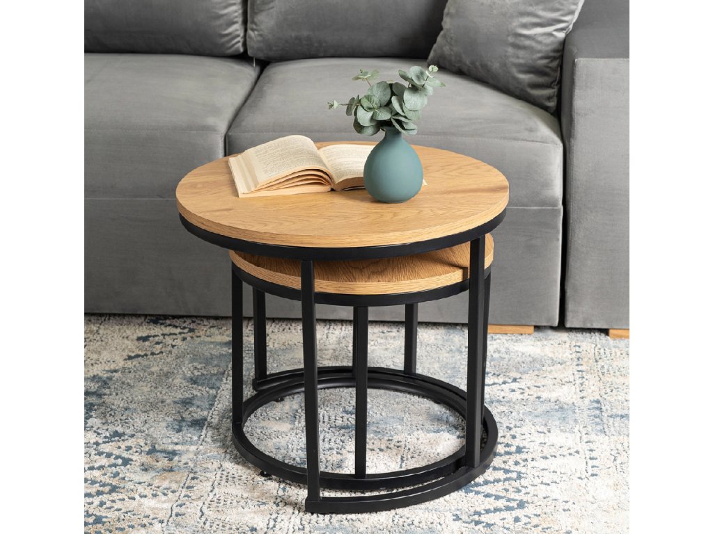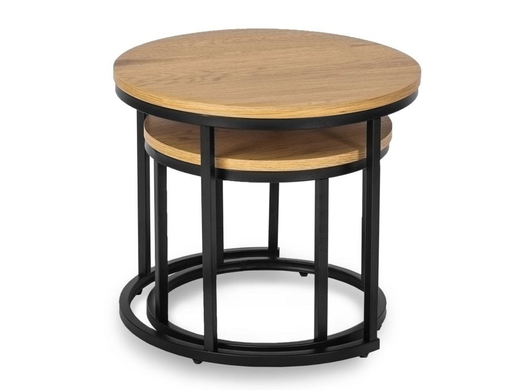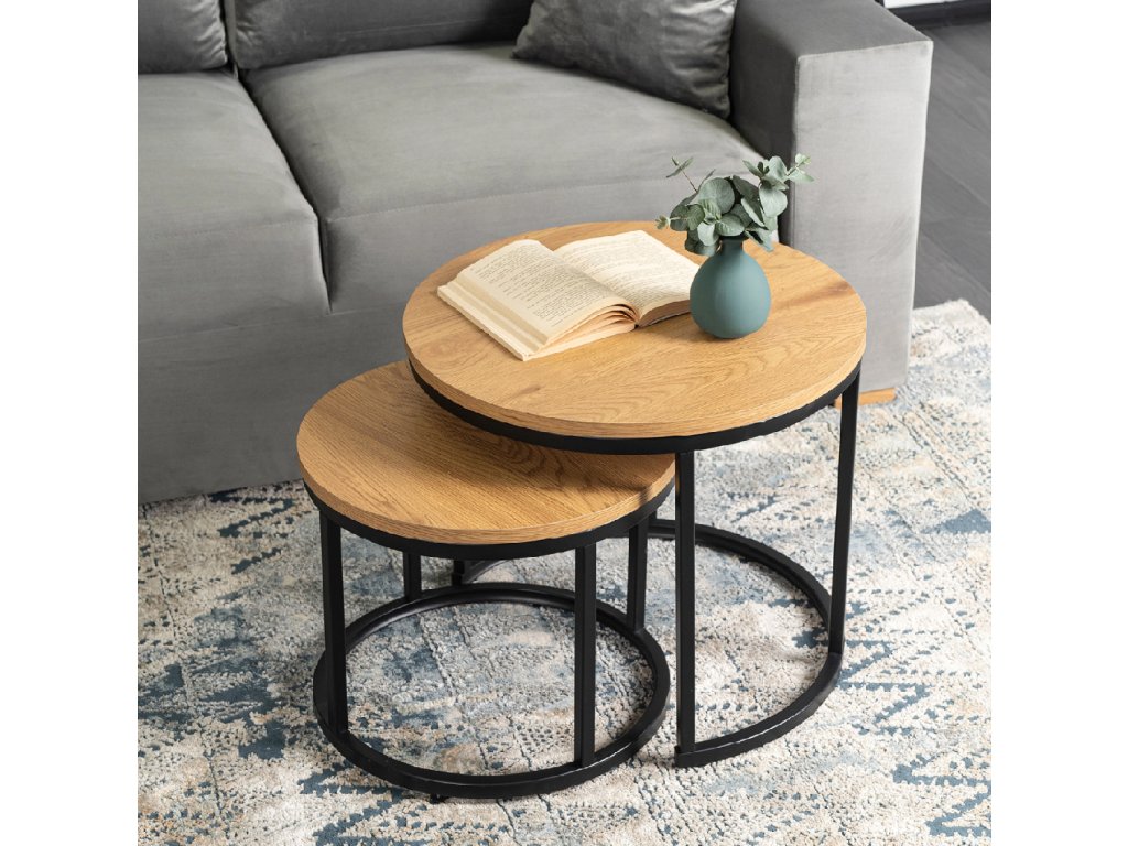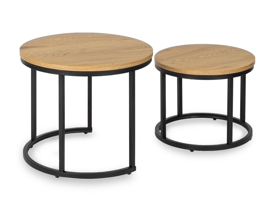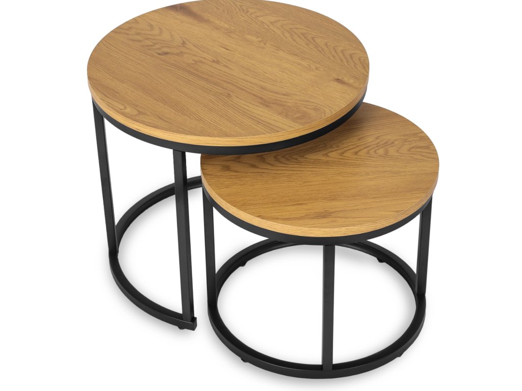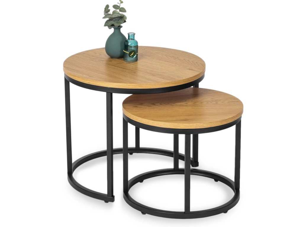A csomag két különböző méretű asztalkát tartalmaz – a kisebb átmérője 60 cm, a nagyobb átmérője 80 cm.