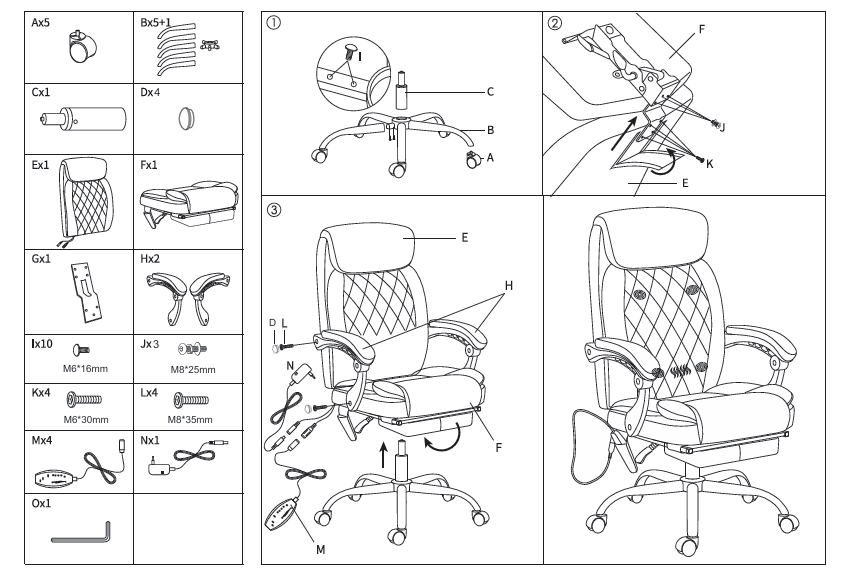 A masszázs- (kivehető) és fűtőfunkciót praktikus távirányítóval lehet kezelni, amely a szék oldalzsebében található. A kihúzható lábtartó, állítható háttámla és ergonomikus forma lehetővé teszi a kényelmes pozicionálást munka vagy pihenés közben. Az erős szerkezet 150 kg teherbírással stabilitást és biztonságot biztosít, miközben a csendes kerekek megkönnyítik a mozgatást.