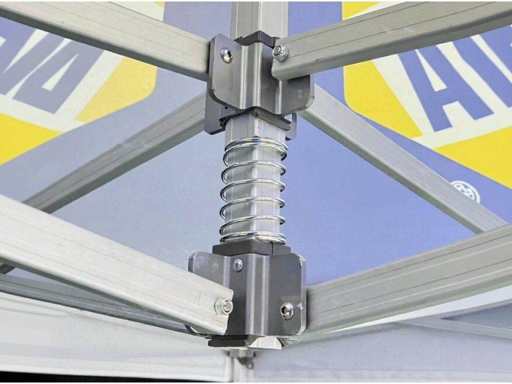 A szerkezet kizárólag kiváló minőségű T6063 alumíniumötvözet profilokból készült, amelyek ellenállnak a korróziónak és a mechanikai sérüléseknek. A sátor hatszögletű lába stabilitást biztosít még nehéz körülmények között is. A magasság négy fokozatban állítható: 190 cm, 200 cm, 210 cm és 220 cm.