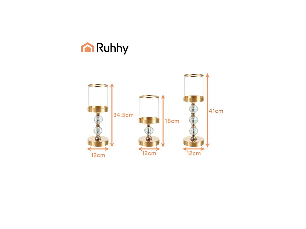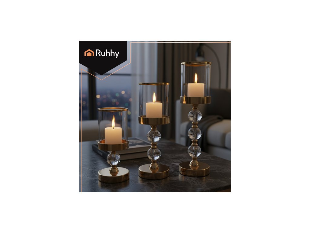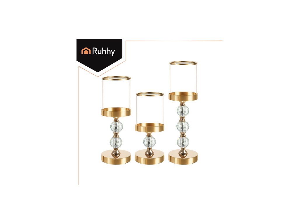 Arany üveg gyertyatartó készlet Ruhhy