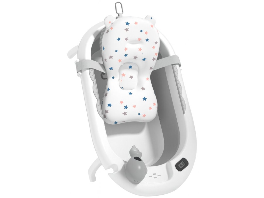 A fürdőkád kiváló minőségű PP műanyagból és BPA-mentes, káros anyagoktól mentes TPE szilikonból készült, megfelel az EN17072 és EN71 szabványoknak. Az antibakteriális anyagok gyengédek a baba bőréhez és könnyen tisztán tarthatók. A fürdőkád beépített, tizedfok pontosságú elektronikus hőmérővel rendelkezik, amely segít fenntartani az optimális vízhőmérsékletet.