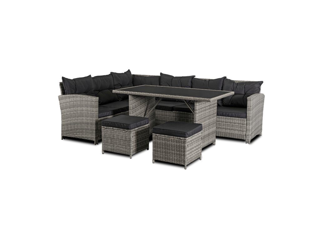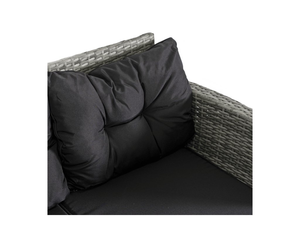 A rattan bútorok kiváló minőségű PE ratánból készülnek, amely a könnyedséget, a tartósságot és a kényelmet ötvözi. Az anyag ideális kültéri használatra, mivel könnyedén ellenáll az időjárási hatásoknak, az UV-sugárzásnak és a nedvességnek. A fém váz, amely stabil és korrózióálló kezelést kapott, biztosítja a bútorok hosszú élettartamát. A tökéletes anyagkombinációnak köszönhetően sok szezonon át élvezheti a rattan bútorokat.