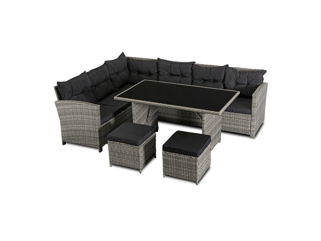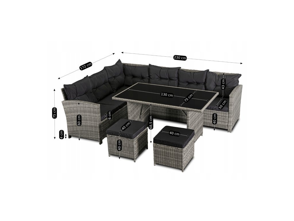 A rattan bútor szett tartalmaz egy kanapét, két fotelt, két puffot és egy üveglapos asztalt. Ez lehetővé teszi, hogy minden darabot az Ön igényeinek megfelelően helyezzen el. Ráadásul az összeszerelés nagyon egyszerű. A bútorok könnyűek és egyszerűen mozgathatók.