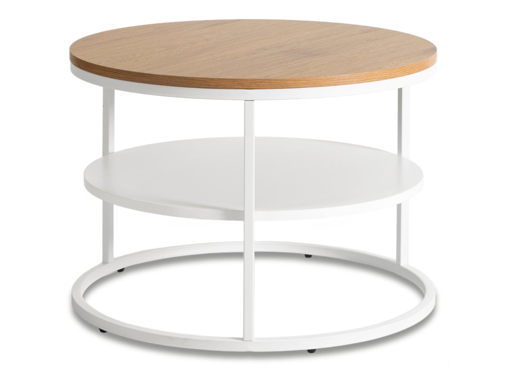 Keres dohányzóasztalt, amely illik a világos és rendezett enteriőrbe? Ez a kerek dohányzóasztal stabil fémvázzal és MDF lappal könnyen beilleszthető a mindennapokba, praktikus helyet biztosít a könyveknek, kávénak vagy dekorációknak, miközben elegáns és rendezett megjelenést kölcsönöz a nappalinak.