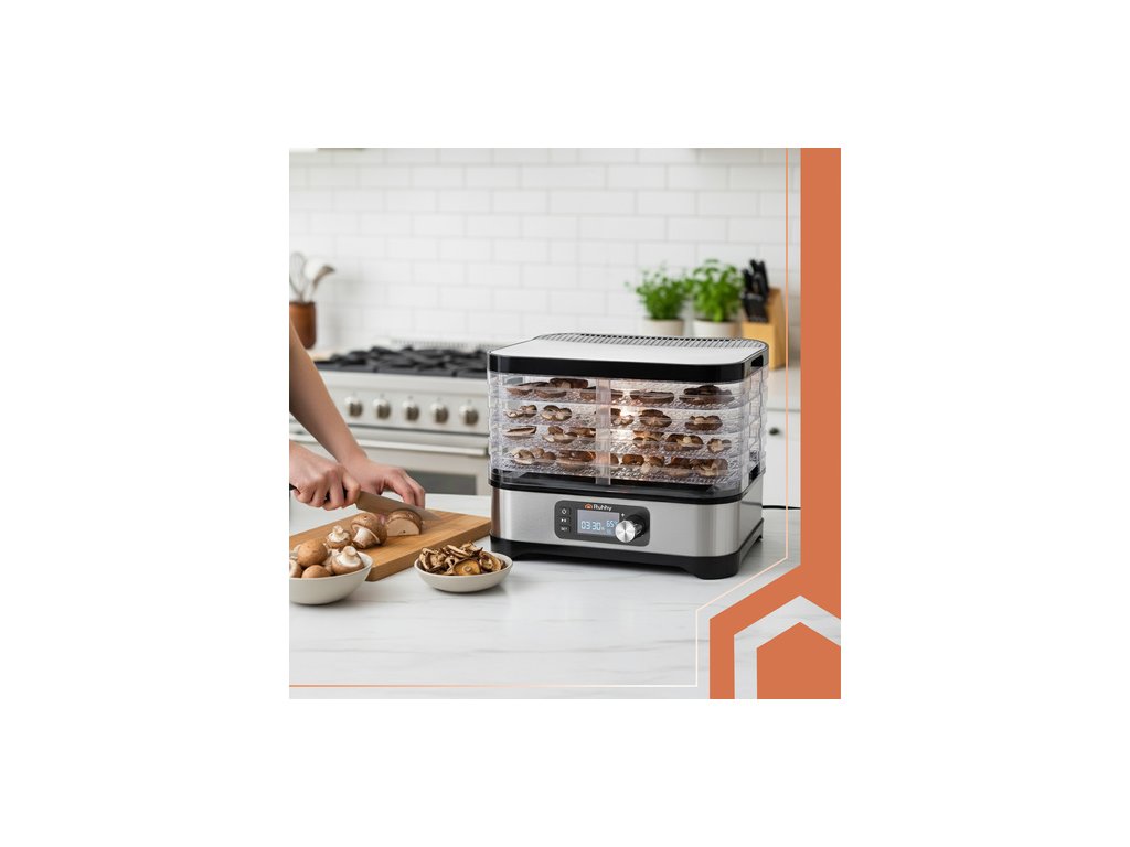 Hány kilogramm alapanyag kerül a kukába pusztán időhiány miatt? Ez az élelmiszer-szárító lehetővé teszi a romlandó termények kontrollált dehidratálását, így hosszú ideig eltartható, otthon tárolható készletek készülhetnek. Az alacsony hőmérsékleten végzett, lassú szárítás csökkenti az élelmiszerek vízaktivitását, ami gátolja a mikroorganizmusok szaporodását, miközben megőrzi az aromát, az ízintenzitást és a tápanyagok jelentős részét. A konvekciós technológia egyenletes hőeloszlást biztosít minden tálcán. Ez nem csupán szárítás, hanem tudatos, higiénikus tartósítás.