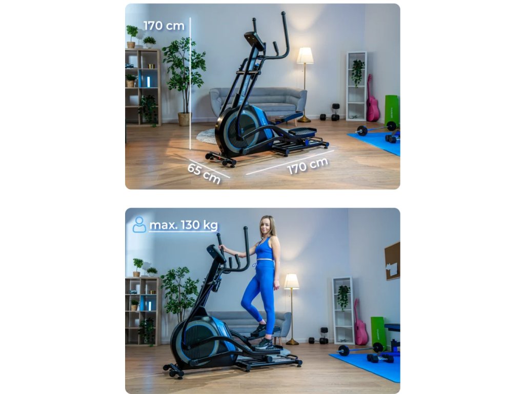 Blaze elliptikus tréner, mágneses ellenállási rendszer: 32 szint, hossz: 170 cm, szélesség: 65 cm, magasság: 170 cm, termék súlya: 74 kg, maximális terhelhetőség: 130 kg