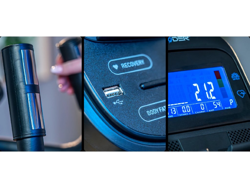 A kormányon található pulzusérzékelők azonnali visszajelzést adnak a pulzusszámodról. A csúszásmentes pedálok minden lépésnél stabilitást és biztonságot nyújtanak. A palacktartó és a mellékelt THUNDER® palack lehetővé teszi, hogy az edzés megszakítása nélkül igyon valamit. A 130 kg maximális terhelhetőség és a masszív kivitel garantálja a tartósságot és az évekig tartó használatot.