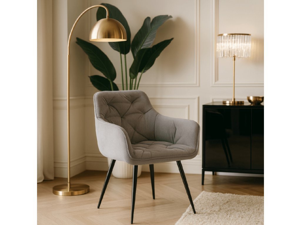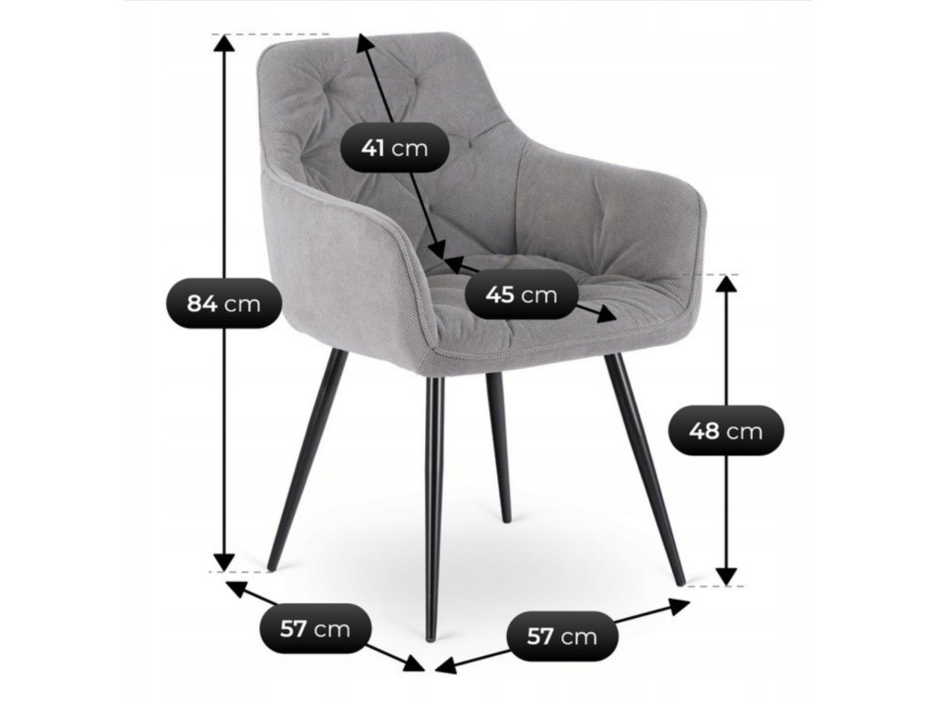 A Modesto étkezőszék 6 cm vastag, puha habréteggel kárpitozott, amely kivételes kényelmet nyújt, ideális hosszú családi vacsorákhoz vagy baráti összejövetelekhez. A háttámla és ülőlap dekoratív varrása eleganciát kölcsönöz, így a szék luxus kiegészítője lesz a belső térnek.