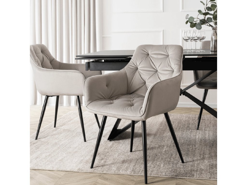 Ötvözi a kényelmet, eleganciát és a modern stílust. A puha bársonykárpit kellemes tapintású, a varrás luxus megjelenést kölcsönöz, a fém lábak pedig stabilitást biztosítanak a mindennapi használat során.