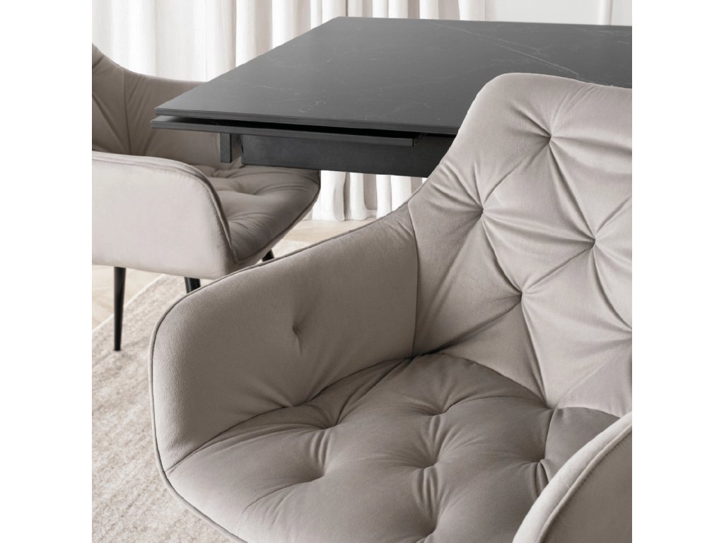 A Modesto étkezőszék ülése 6 cm vastag puha habréteggel van párnázva, amely különleges puhaságot nyújt, ideális hosszú családi vacsorákhoz vagy baráti összejövetelekhez. Az elegáns varrás a háttámlán és az ülésen növeli az esztétikát, így a szék luxus kiegészítője lesz az otthonának.