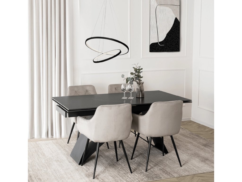 A Modesto étkezőszék tökéletes választás azoknak, akik modern és stílusos enteriőrre vágynak. Időtálló kialakításának és minőségi anyagainak köszönhetően egyedi hangulatot kölcsönöz minden konyhának vagy étkezőnek. A szék puha és finom bársony kárpittal van bevonva, amely maximális komfortot és kényelmet biztosít az ülés során.
