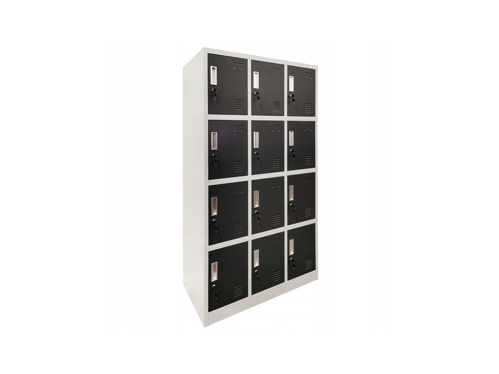 A tizenkét különálló rekesznek köszönhetően a szekrény ideális öltözőkbe vállalatoknál, iskolákban, sportklubokban és közintézményekben. Az univerzális kialakítás és a kompakt méretek lehetővé teszik az elhelyezést még kisebb helyiségekben is.