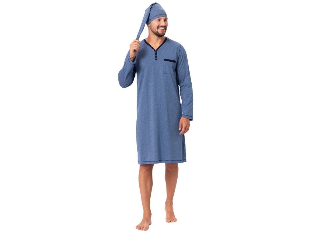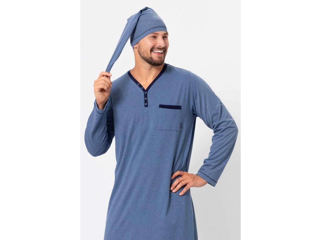 Férfi hálóing sötétkék Bonifacy + Sapka