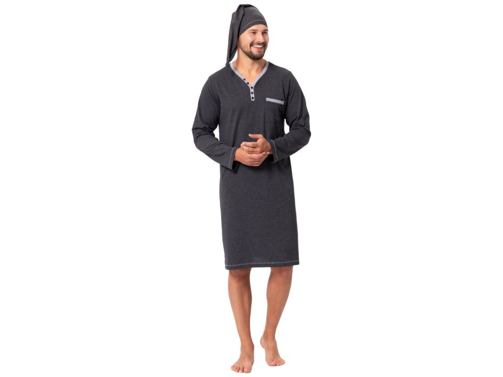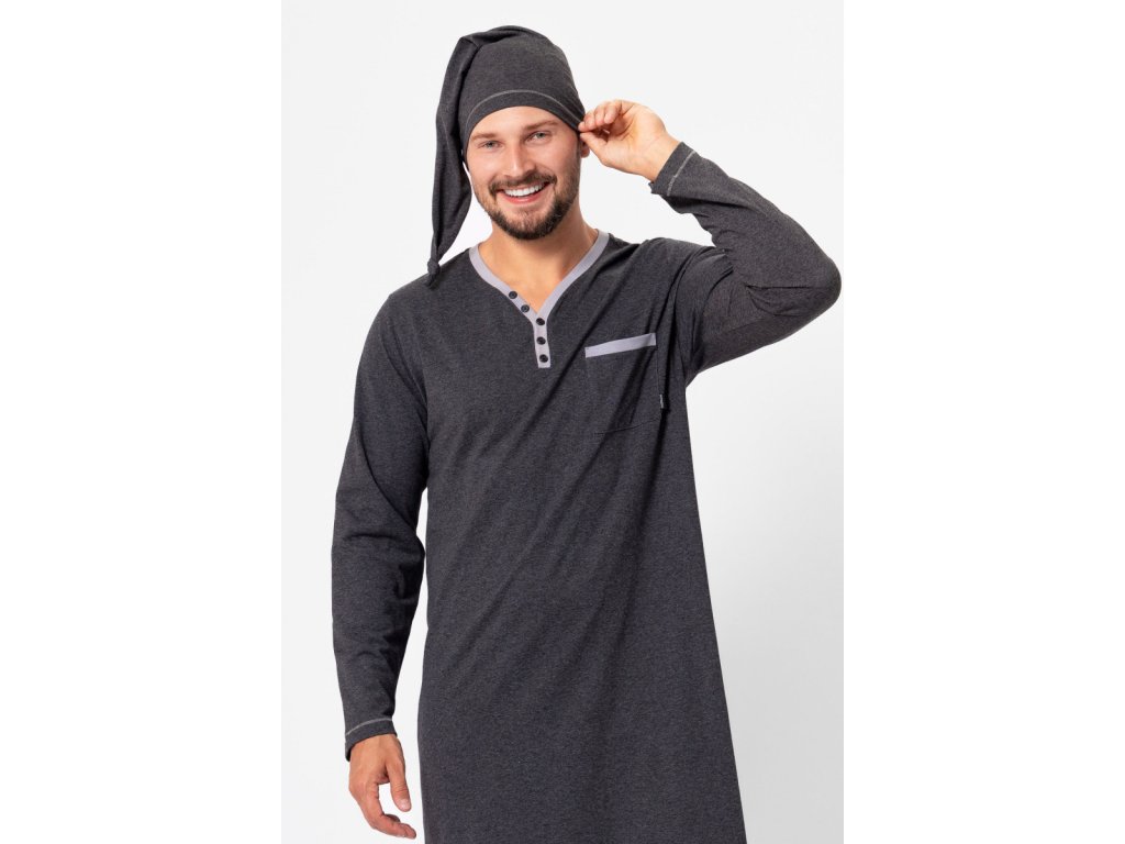 Férfi hálóing sötétszürke Bonifacy + Sapka
