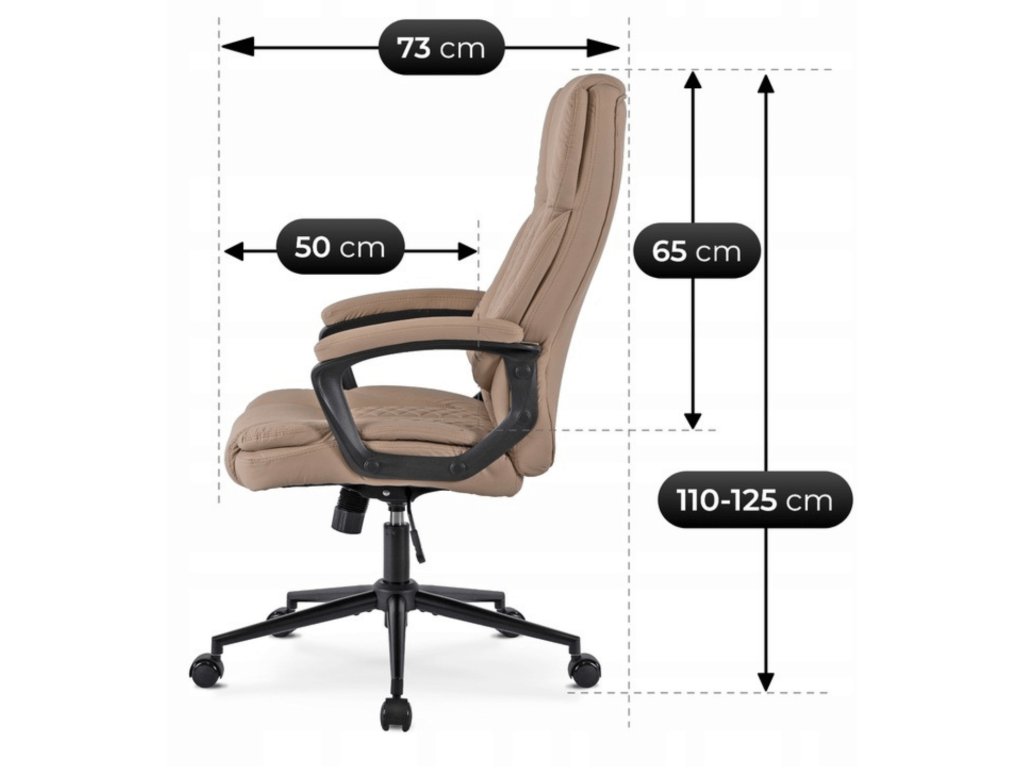 Az ülőlap és a háttámla minőségi bézs műbőrrel borított, amely kellemes tapintású és tartós a mindennapi használat során. A masszív fekete műanyag szerkezet stabilitást és hosszú távú megbízhatóságot biztosít, akár 150 kg maximális terhelés mellett is.