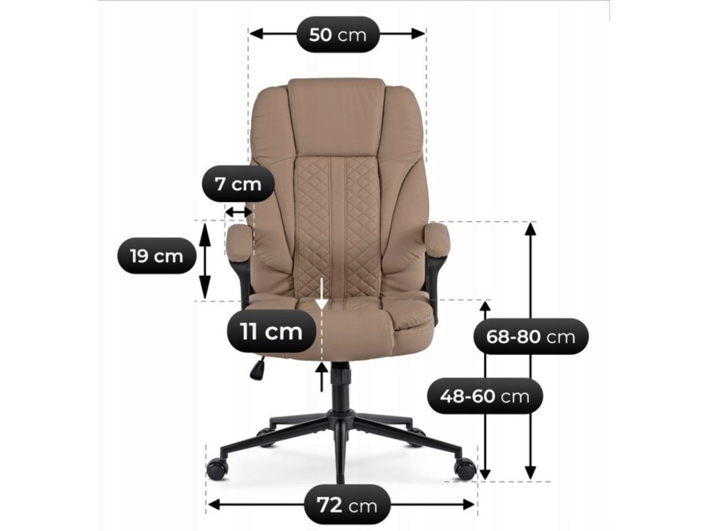 Az ergonomikus ülőlapforma, a dönthető és különböző pozíciókban rögzíthető háttámla, valamint az állítható magasság lehetővé teszi a szék egyéni igényekhez történő igazítását. A forgatható talp halk gumikerék segítségével biztosítja a zökkenőmentes mozgást a helyiségben anélkül, hogy a padlót károsítaná.