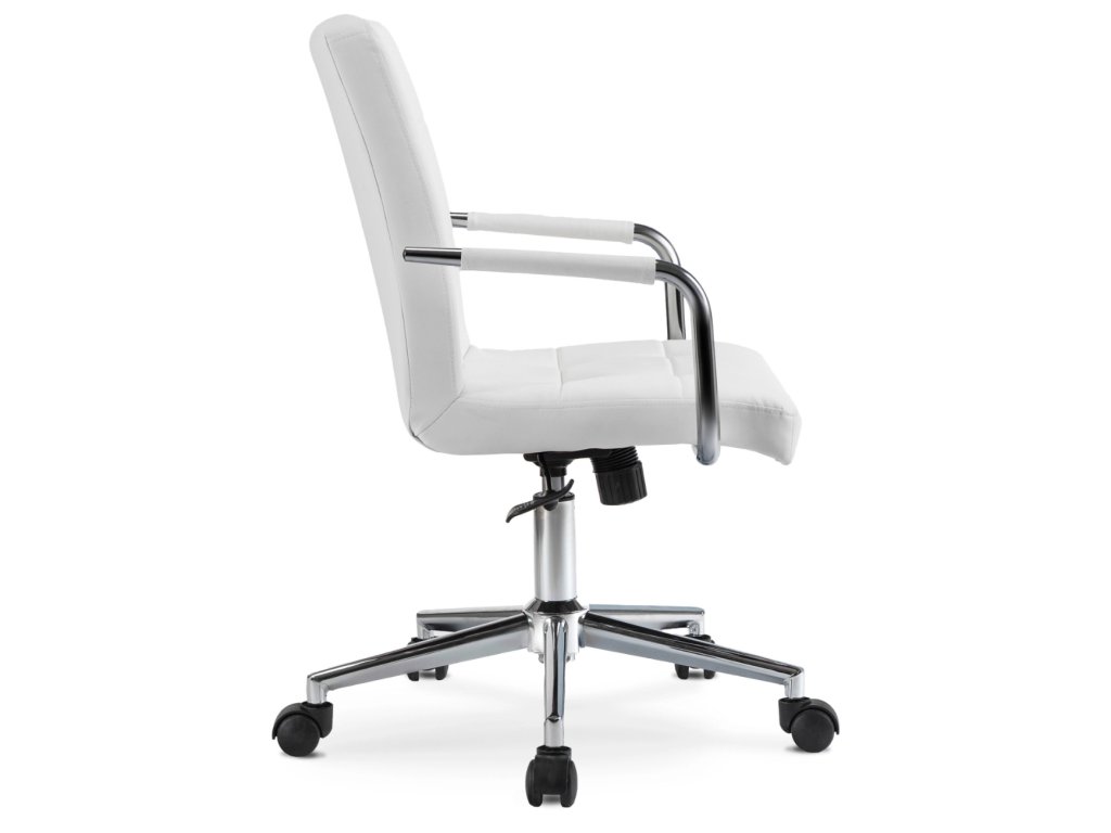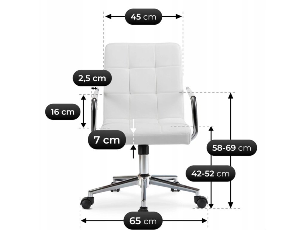 A kiváló minőségű eco-bőr kárpit finom tapintású, ugyanakkor ellenáll a mindennapi használatnak. A fehér szín univerzális és elegáns megjelenést kölcsönöz a széknek, amely különböző stílusú szobákhoz illik.