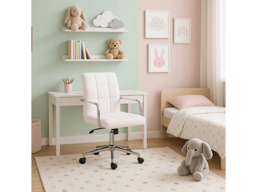 Szeretnétek kényelmet és játékosságot vinni a gyerekszobába? A fehér Astro szék finom eco-bőrrel és modern, elegáns megjelenéssel ideális hely a tanuláshoz, játékhoz és pihenéshez.
