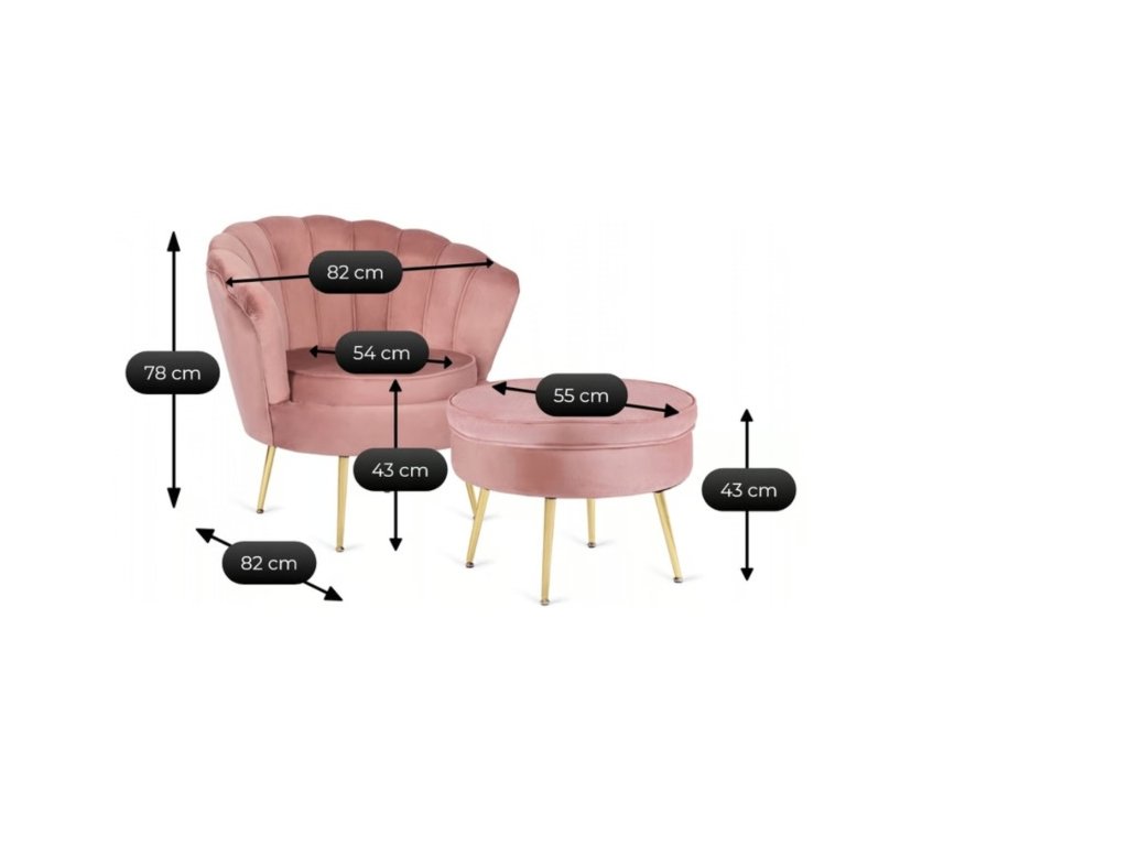 Vágysz egy helyre, amely tökéletes pihenést nyújt, és egyben meghitté varázsolja otthonod? A Grand fotel lábtartóval minden igényt kielégít, amit a kényelmes ülésről elképzelsz, stílusos és komfortos. Finom rózsaszín színével és elegáns arany lábaival a helyiség figyelemreméltó elemévé válik. Nemcsak modern otthonokba, hanem stílusos kávézókba, olvasószobákba, cukrászdákba, valamint hotelek és szalonok relaxációs zónáiba is tökéletesen illik.