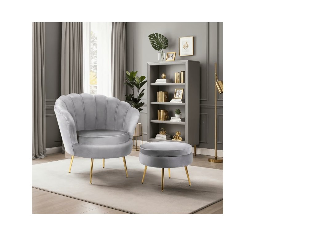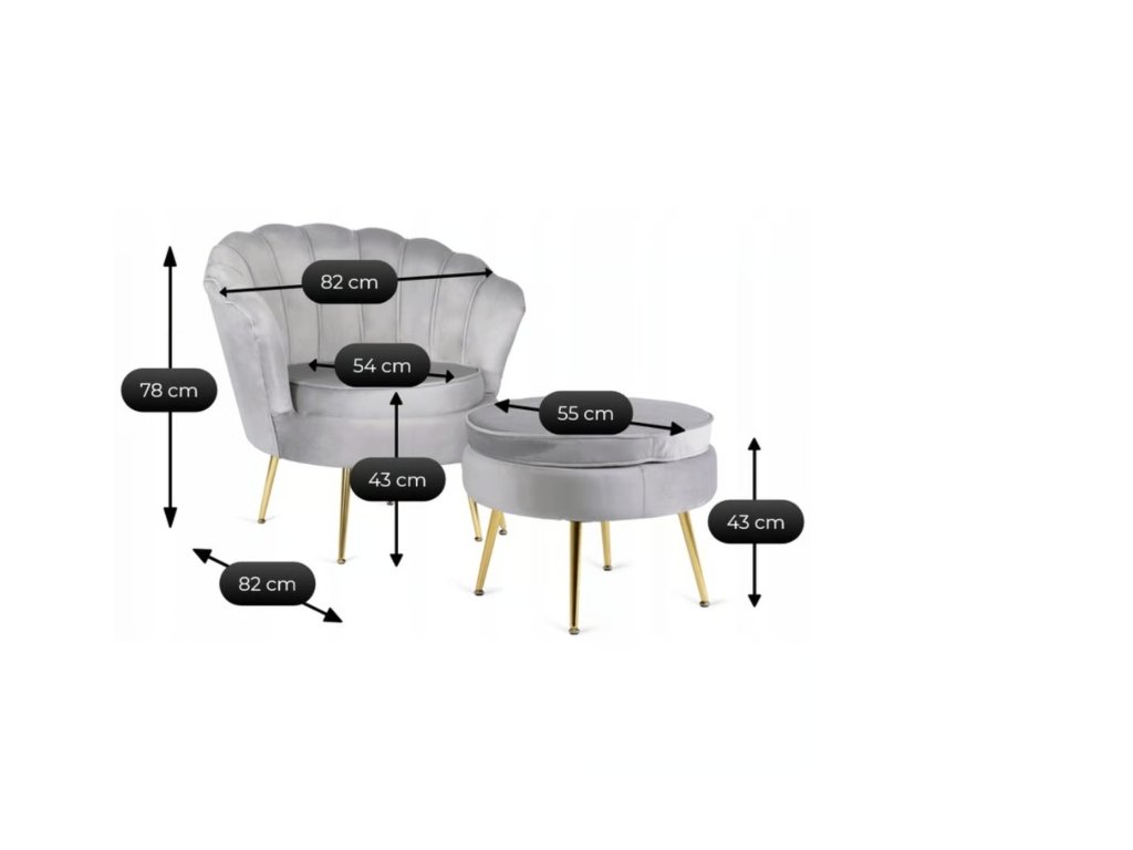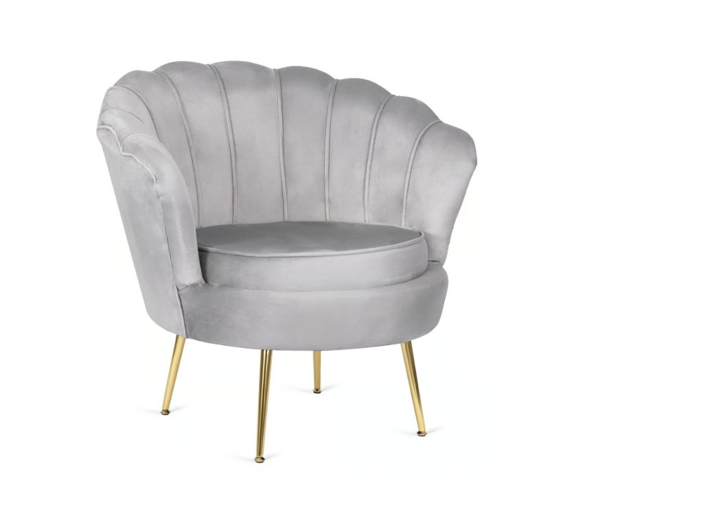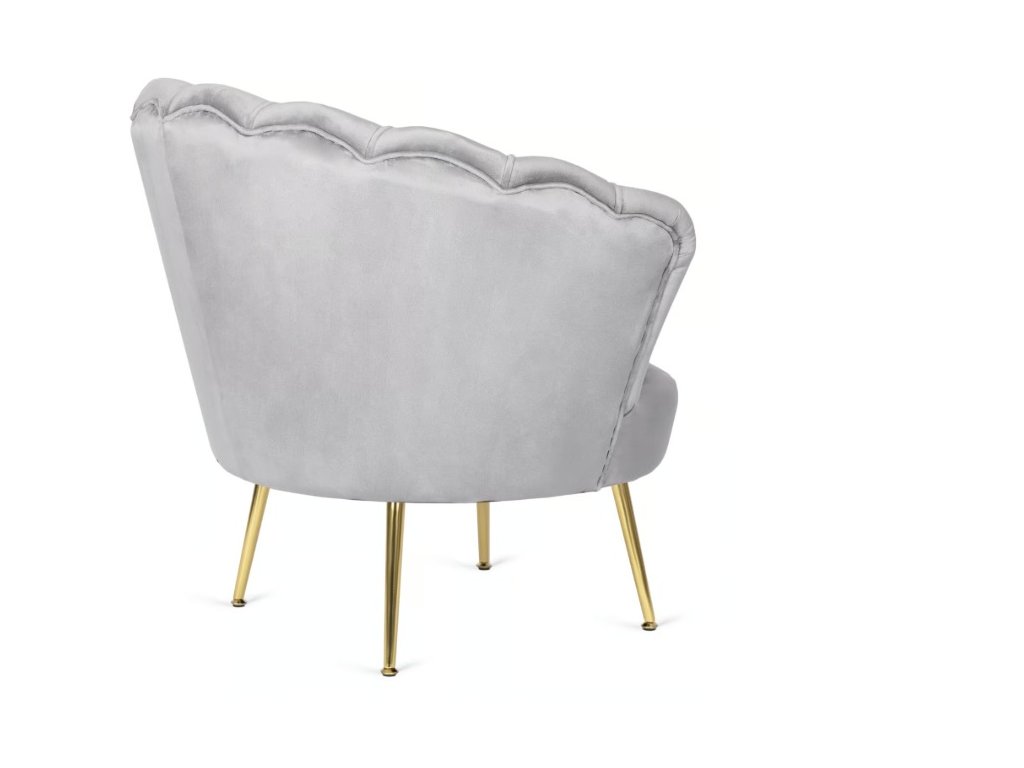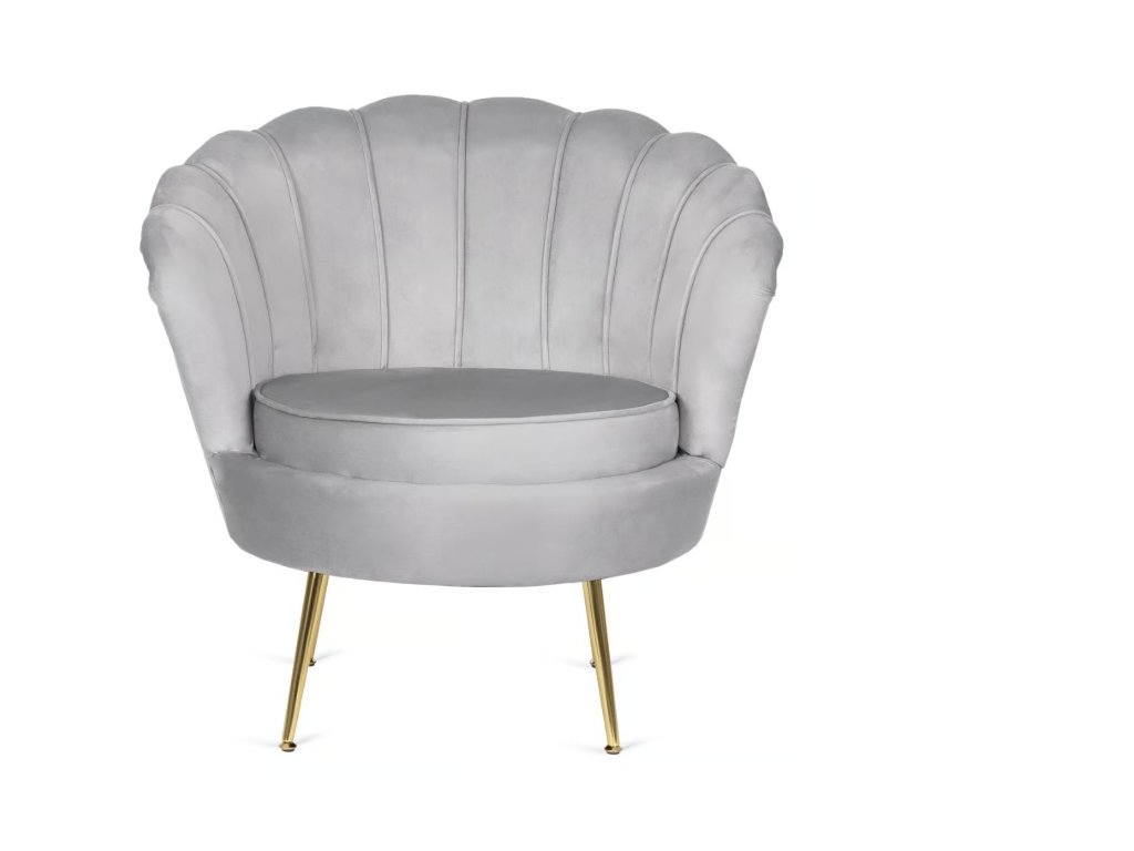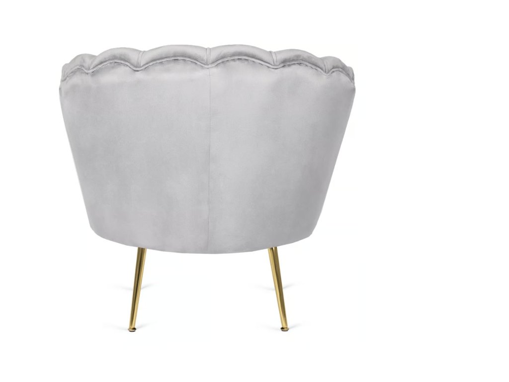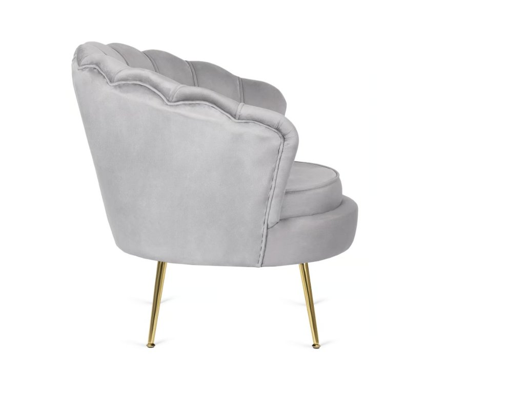 A kagyló stílusú háttámla finom, nőies és egyben elegáns megjelenést kölcsönöz. A lekerekített vonalak természetesen körülölelik a testet, és ott nyújtanak támaszt, ahol a legnagyobb szükség van rá. A masszív fém lábak stabilitást és akár 120 kg teherbírást biztosítanak. Az arany kivitel luxus érzetet ad a bútornak.