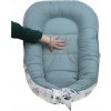 Gyermekágy szett, 7 db, minta: safari, szín: kék, fehér, anyag: pamut, nerc, csomagban: fészek, ütéscsillapító párna, takaró, matrac, lapos párna, kendő, pamut huzat, mosógépben mosható 40°C-on.