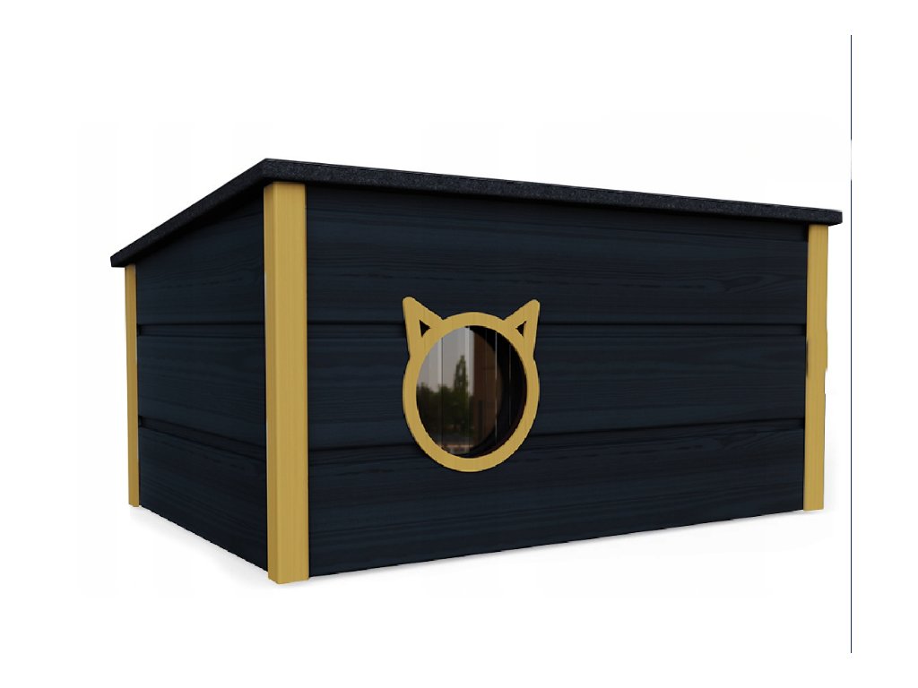 Hőszigetelt macskaház nagy fekete mustársárga sarkokkal