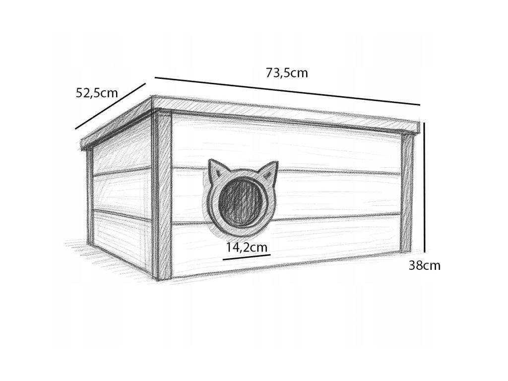 A macskaház szárított fenyőfából készült, ami stabilitást és hosszú élettartamot garantál. A falakat 1,5 cm vastag fa borítólemezek borítják, amelyek kellemes és biztonságos környezetet biztosítanak macskája számára.