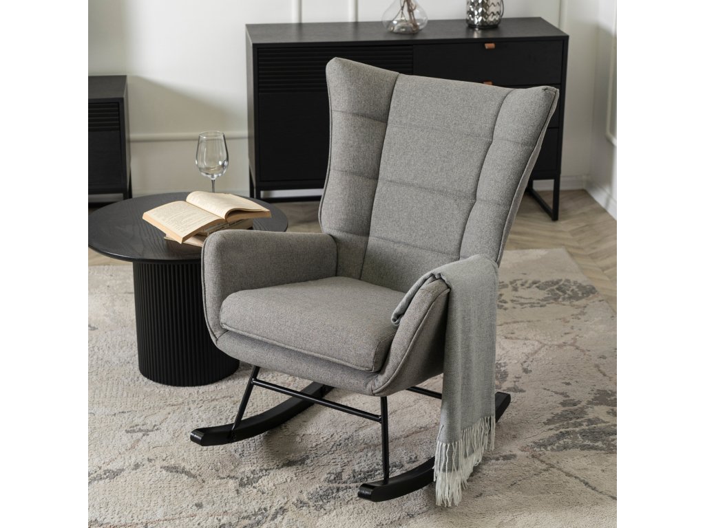 Jackson szárnyas hintaszék, építőanyag: fém, fa, borítóanyag: velúr, szövet, mélység: 88 cm, szélesség: 67 cm, magasság: 95 cm, maximális teherbírás 120 kg, szín: fekete, bézs, szürke