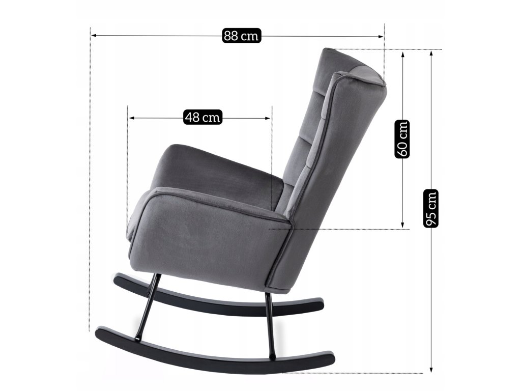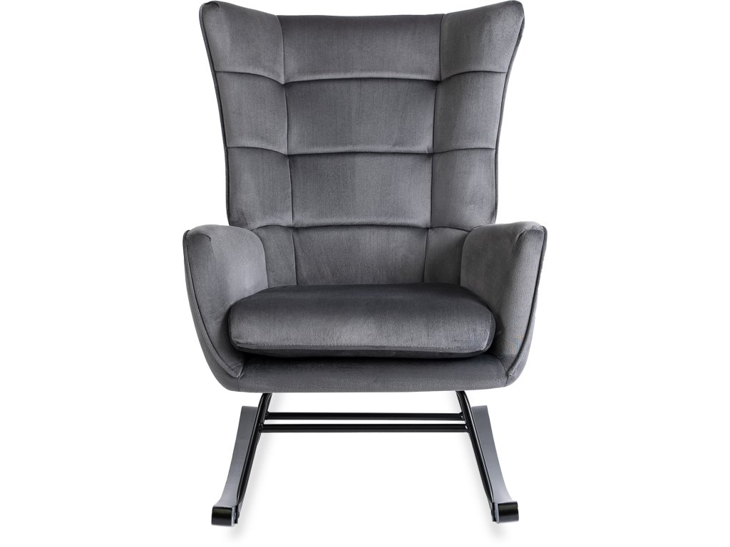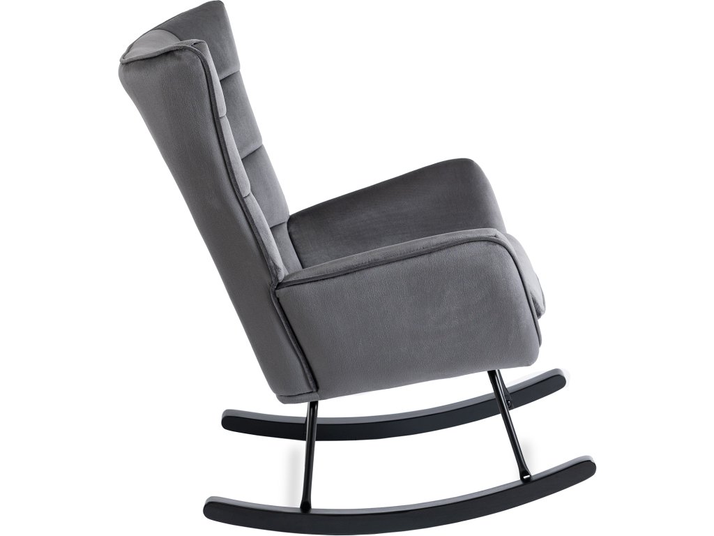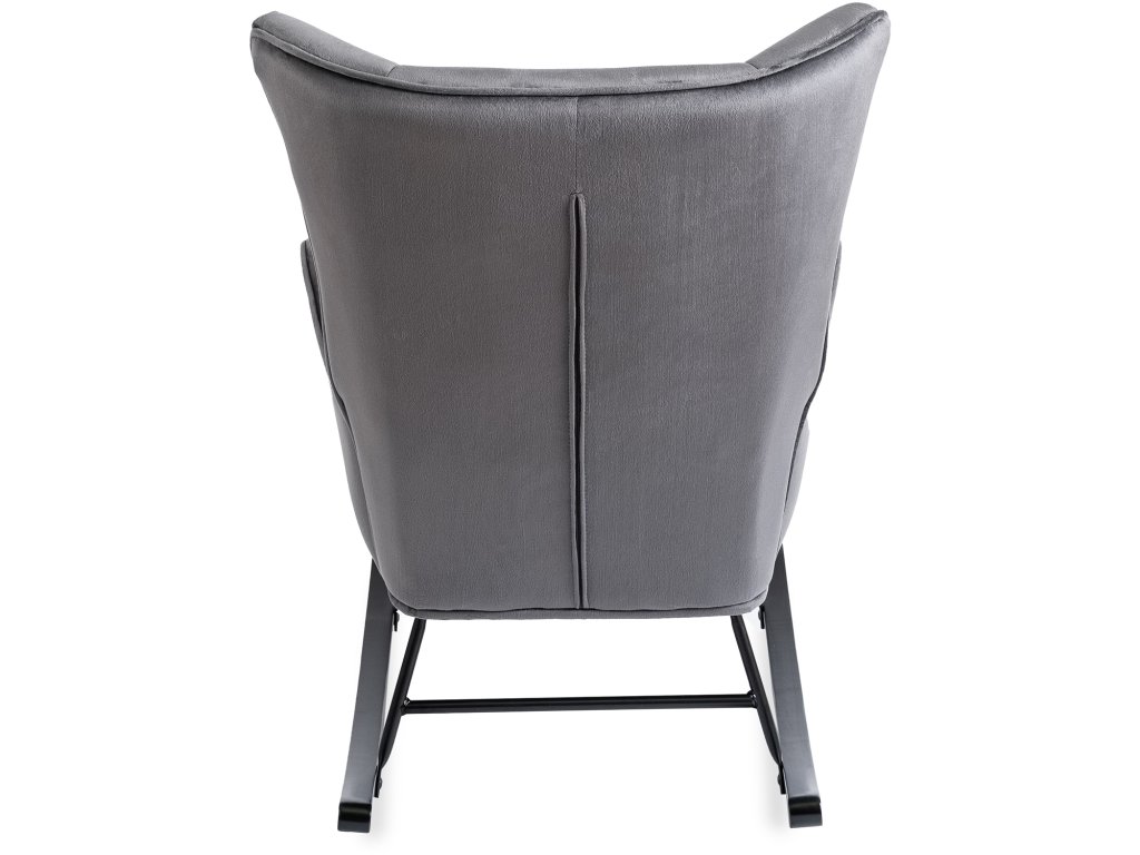 A szék masszív fém alapon áll, amelyhez fa sínek (úgynevezett csúszótalpak) kapcsolódnak, lehetővé téve a gyengéd hintázást. Bár nem rendelkezik hagyományos lábtartóval, egy praktikus keresztlécet tartalmaz, amely lábtámaszként szolgálhat – ideális esti olvasáshoz vagy filmnézéshez.