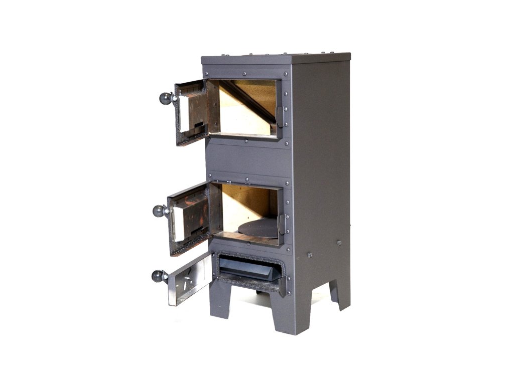 A szerkezet acélból készült, az égéstér samott- és vermikulit lapokkal van bélelve, a rostély pedig öntöttvasból van, 20 × 23 cm méretű.