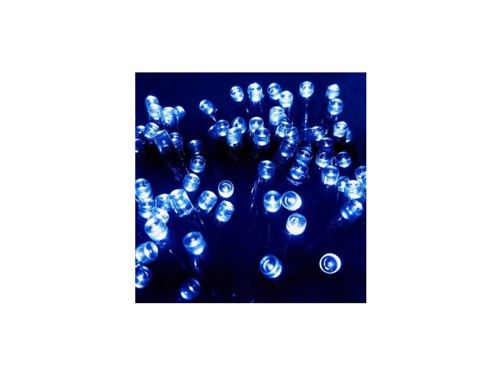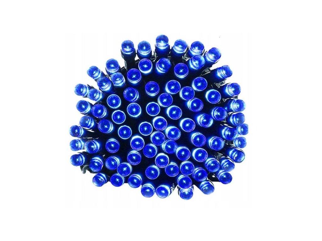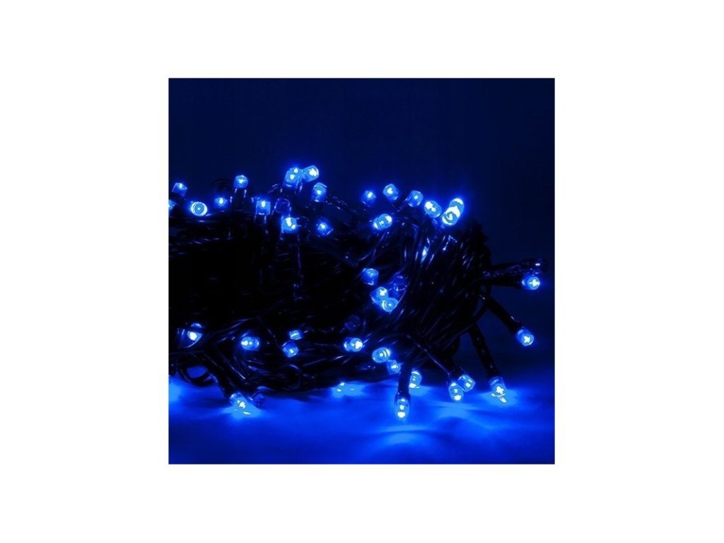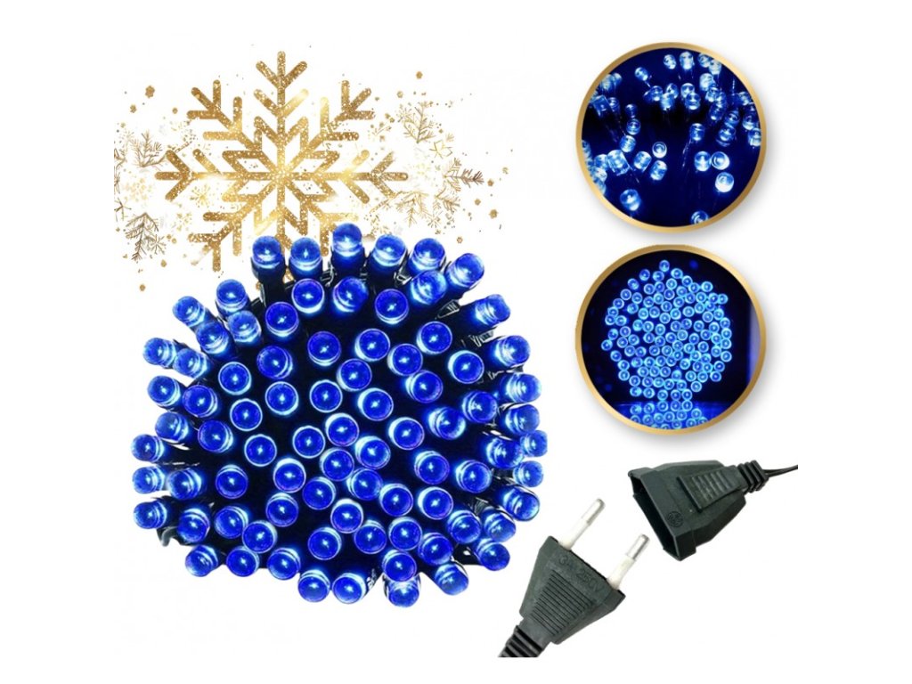 Karácsonyi fénylánc 200 LED 16 m kék, LED-ek száma: 200, szín: kék, üzemmódok száma: 8, vízállósági osztály: IP44, teljesítmény: 6,9 W, feszültség: 230V / 31V, teljes hossz: 16 m, súly: 245 g.