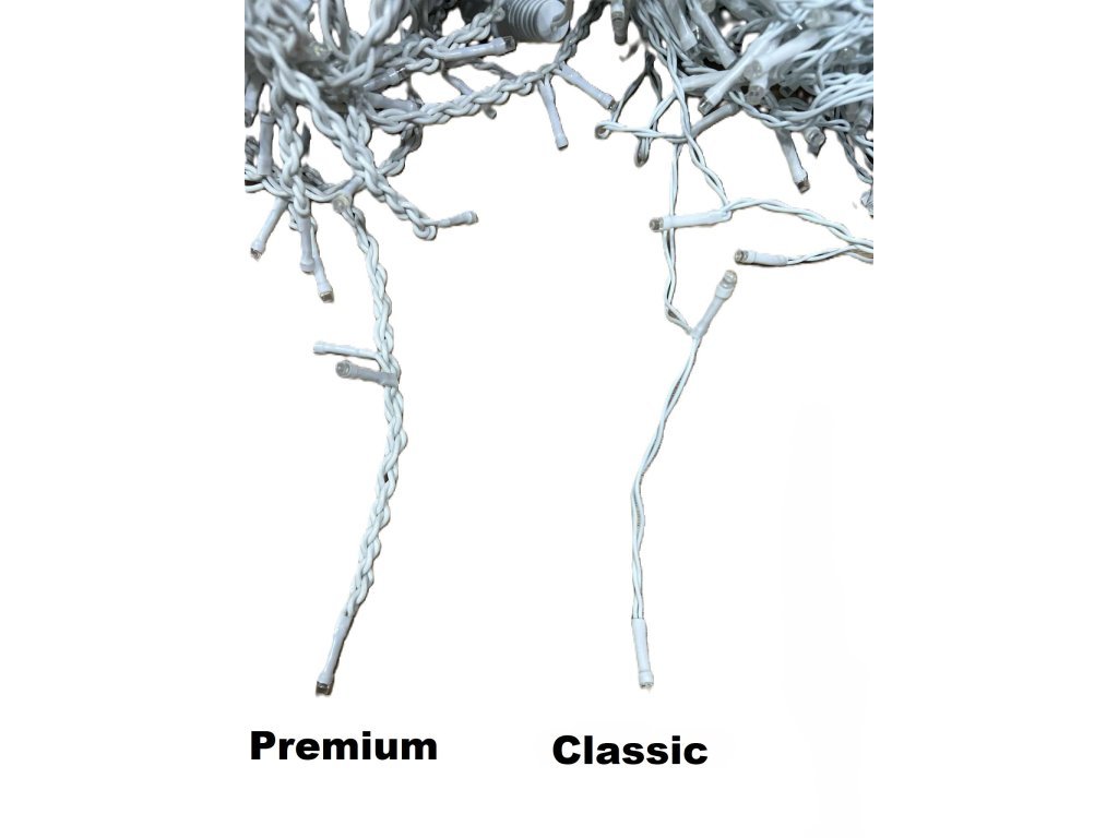 A prémium világítás elsősorban a kábelek vastagságában különbözik a hagyományos karácsonyi világítástól, ami számos olyan előnnyel jár, amelyet minden karácsonyi dekoráció kedvelője értékelni fog. A vastagabb kábelek kevésbé sérülnek a kezelés során, ami biztosítja, hogy kényelmesebben és biztonságosabban dolgozhasson velük, ez különösen fontos a kültéri használat során, ahol a kábelek ki vannak téve a különböző időjárási körülményeknek. A vastagabb kábelek jobb stabilitásának és tartósságának köszönhetően biztos lehet benne, hogy világítása szilárdan a helyén marad és működőképes lesz az ünnepek alatt. Ezenkívül a robusztus kábelkialakítás hozzájárul a világítás hosszabb élettartamához, így karácsonyi díszei sok évszak után is teljes pompájukban ragyognak majd.