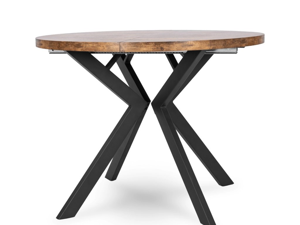 Kerek kihúzható asztal LUKAS, rusztikus tölgy, anyaga: MDF lemez, szerkezeti anyag: fém, szerkezet színe: fekete, asztallap színe: rusztikus tölgy, méretei: 75 x 100 x 250 cm.
