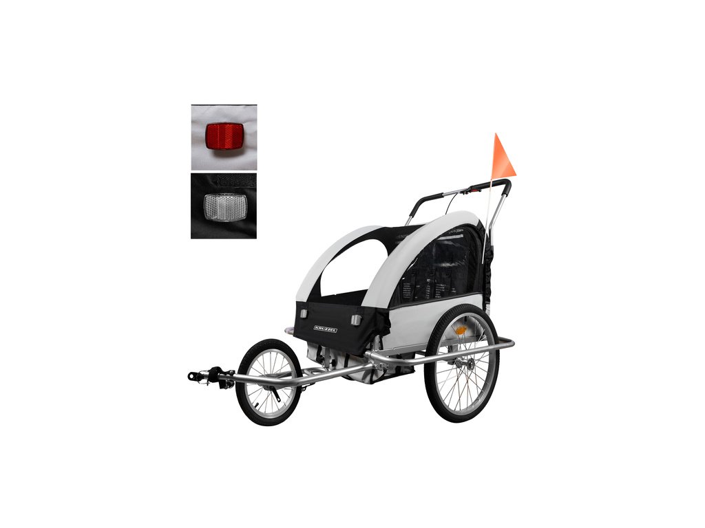 A biztonsági öveken és védőkabinen kívül fényvisszaverő elemekkel, figyelmeztető zászlóval és parkolófékkel is felszerelt. A gyerekeid mindig biztonságban lesznek, te pedig biztos lehetsz abban, hogy megbízhatóan szállítod őket.