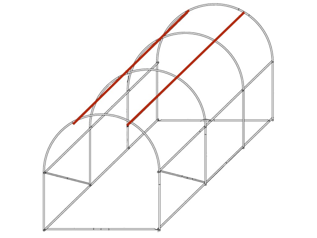 A kerti fóliasátor alapját 19 mm átmérőjű, 0,7 mm falvastagságú horganyzott acélcsövekből készült váz adja.