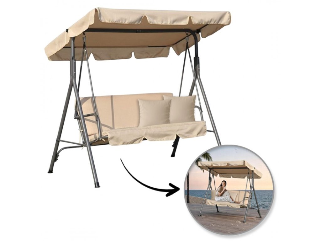 A masszív fémszerkezet és a minőségi kivitelezés nagyfokú stabilitást és biztonságot garantál. A hinta akár 3 felnőttet is elbír, így családjával vagy barátaival is élvezheti a pihenés pillanatait.
