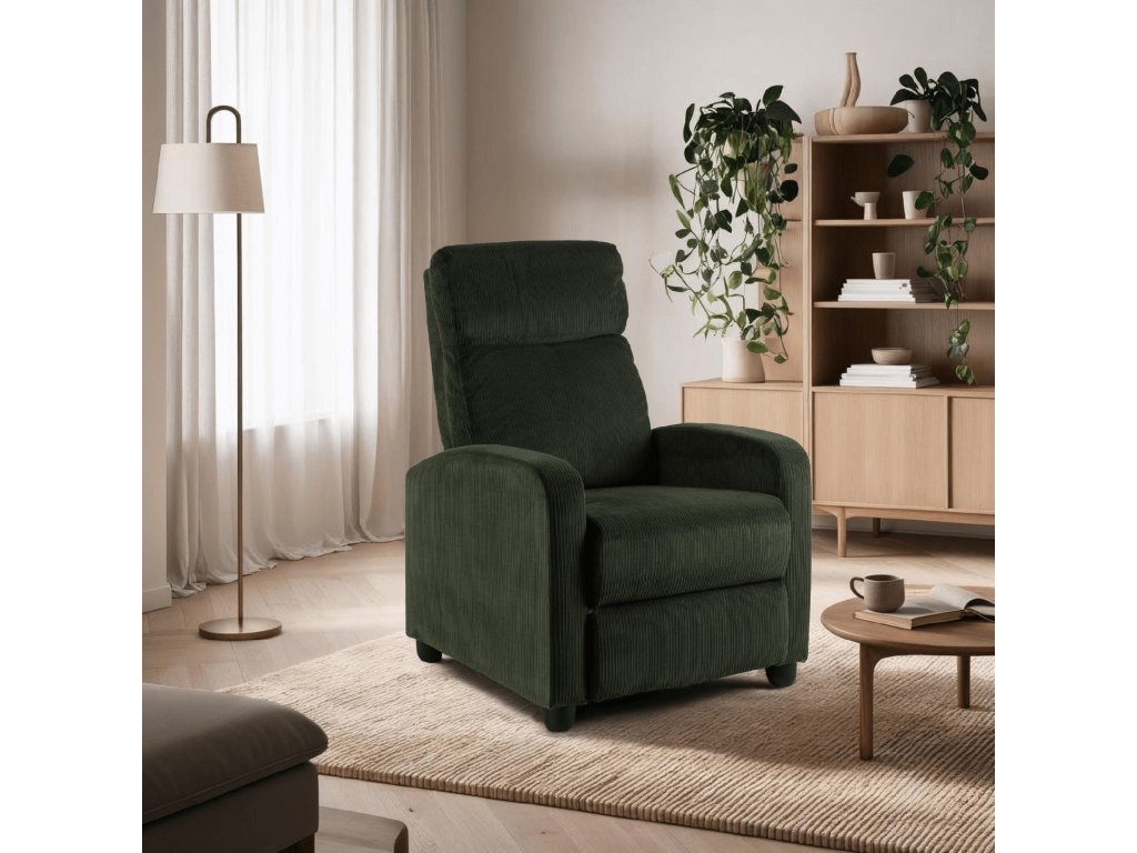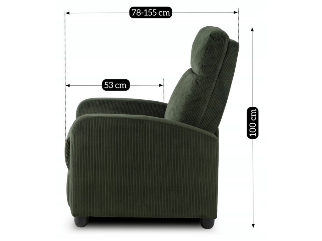 Kordbársony dönthető fotel lábtartóval Danny zöld