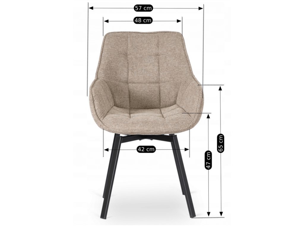 Az ergonomikusan formázott ülőfelület és háttámla megtámasztja a gerincet, így hosszabb ülés esetén is kényelmet nyújt. Az ülőrész szélessége 42 cm, mélysége 44 cm, magassága 47 cm – ideális méretek a napi kényelemhez. A szék teljes magassága 90 cm, így tökéletesen illik étkező- vagy íróasztalhoz is.