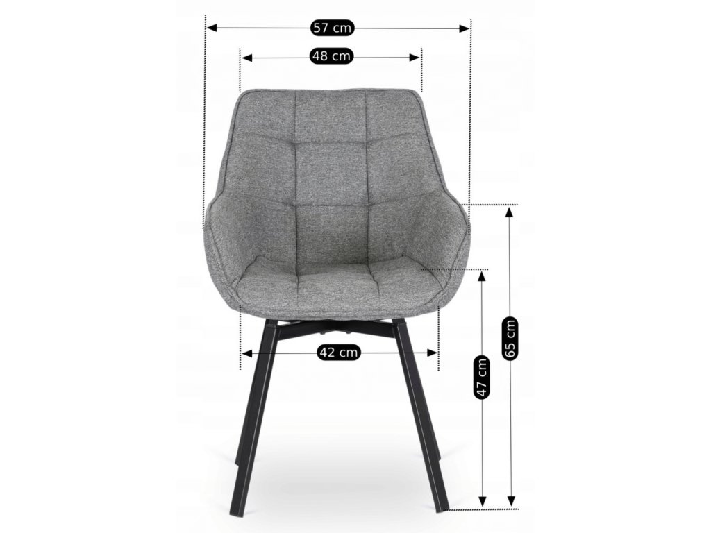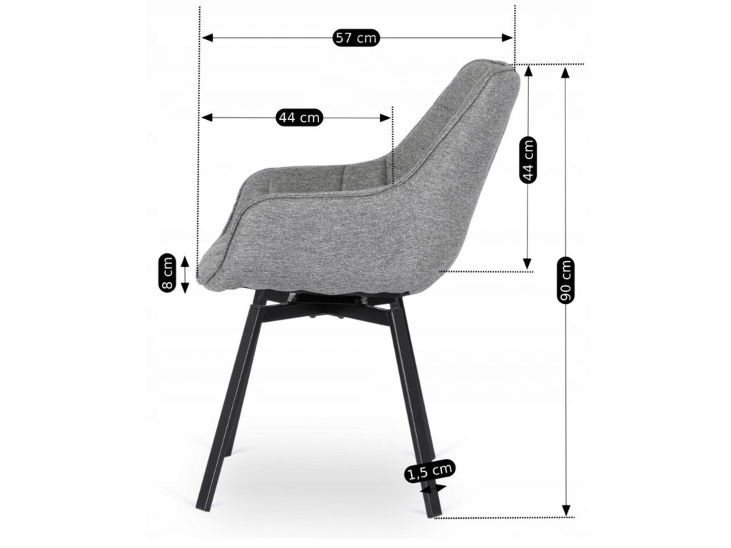 Az ergonomikusan formázott ülőfelület és háttámla megtámasztja a gerincet, így hosszabb ülés esetén is kényelmet nyújt. Az ülőrész szélessége 42 cm, mélysége 44 cm, magassága 47 cm – ideális méretek a napi kényelemhez. A szék teljes magassága 90 cm, így tökéletesen illik étkező- vagy íróasztalhoz is.