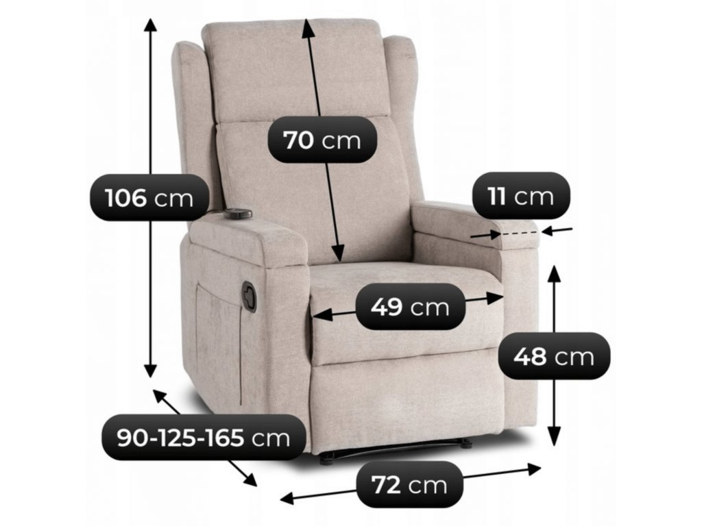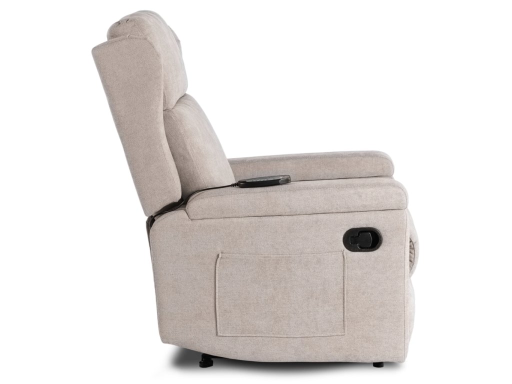 A masszázsfunkció lehetővé teszi a lábak, combok, derék és gerinc ellazítását. A kezelése egyszerű távirányítóval történik, ahol beállíthatja a masszázs intenzitását és időtartamát. A praktikus részletek, mint a nyitható karfák tárolóhellyel és a állítható lábtartó, fokozzák a kényelmet minden használat során.