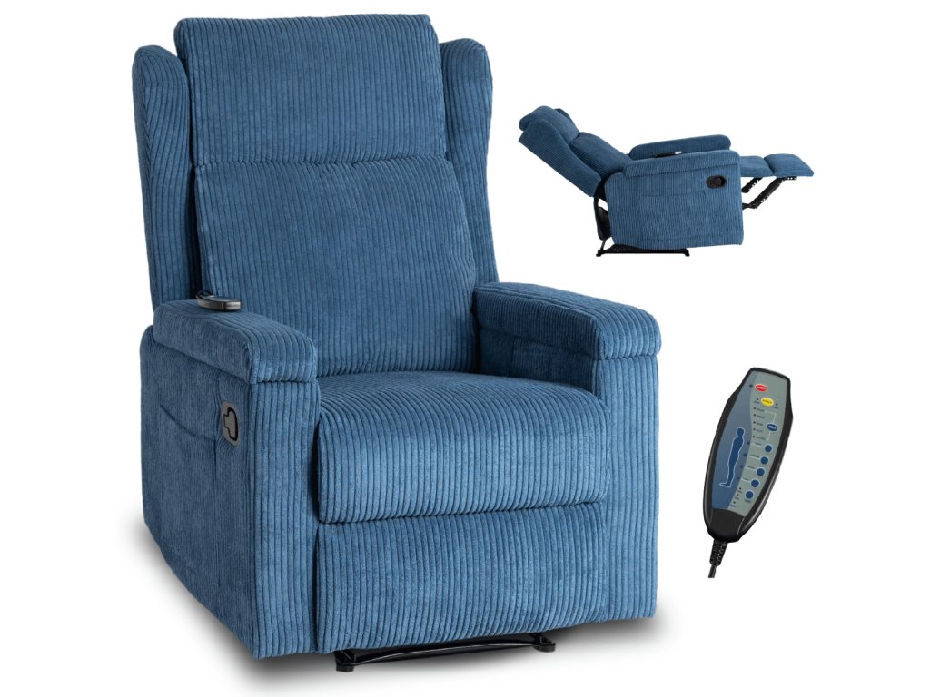 A masszázsfunkció segítségével ellazíthatja a lábakat, combokat, deréktájat és a hátat. A vezérlés egyszerűen történik távirányítóval, ahol beállítható a masszázs intenzitása és időtartama igény szerint. A praktikus részletek, mint a nyitható karfák tárolóhellyel és az állítható lábtámasz, növelik a komfortot minden használat során.