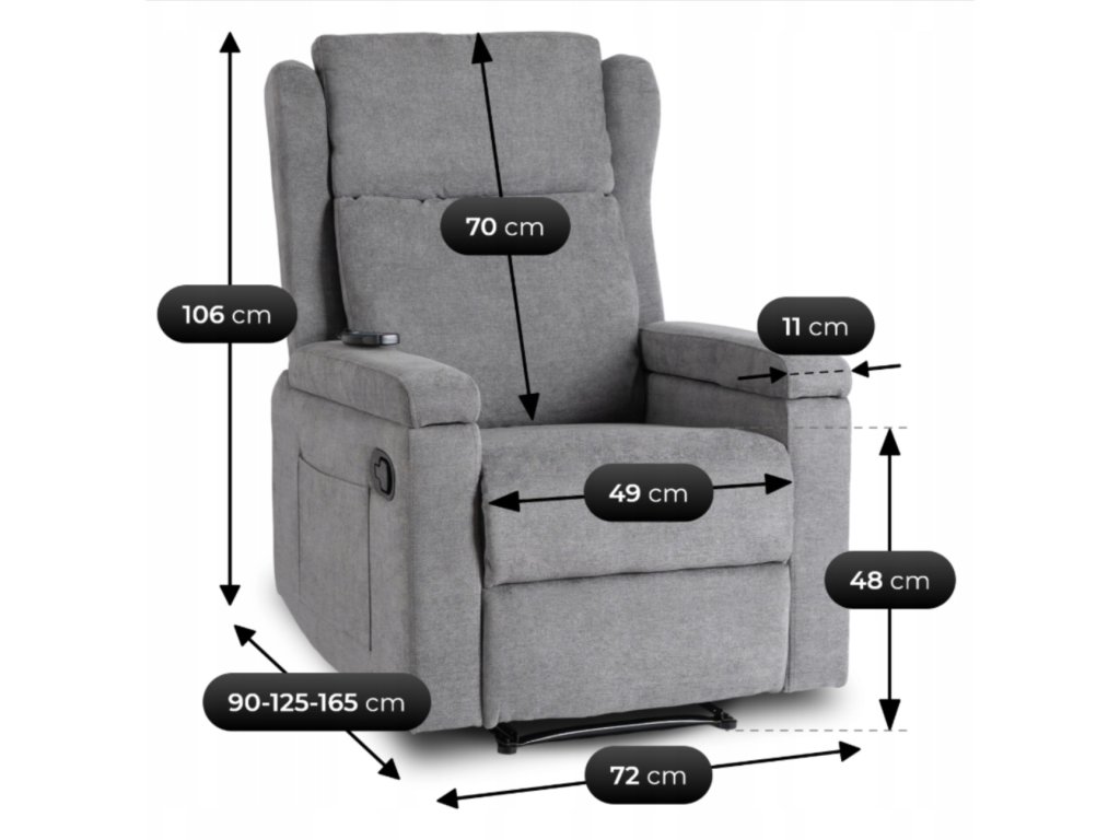 A masszázsfunkció segítségével ellazíthatja a lábakat, combokat, deréktájat és a hátat. A vezérlés egyszerűen történik távirányítóval, ahol beállíthatja a masszázs intenzitását és időtartamát. A praktikus részletek, mint a nyitható karfák tárolóhellyel és az állítható lábtámasz, növelik a komfortot minden használat során.