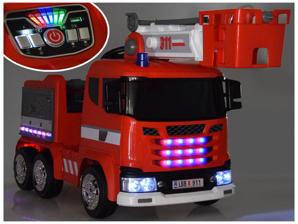 A műszerfalon található a daru karjának irányítása, amely lehetővé teszi annak fel- és lemozgását. A kis kezelő emellett meghosszabbíthatja vagy behúzhatja a kampót egy karral. A nagyobb szórakozás érdekében a jármű víztartállyal és tűzoltó készülékkel van felszerelve, így a gyermek tűzoltós játékot vagy virágöntözést is játszhat.