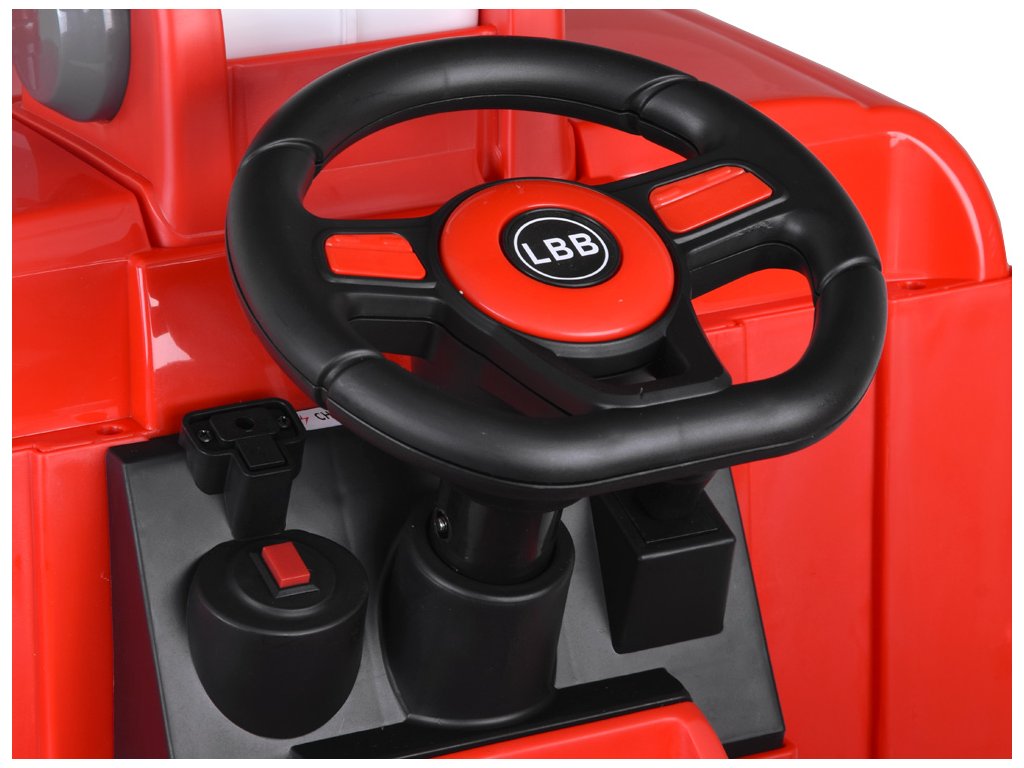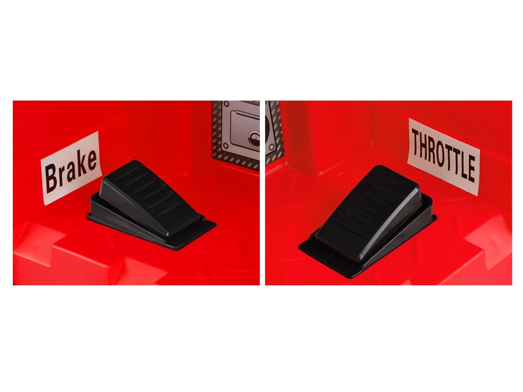 A daru piros gombbal indul, amely megnyomva aktiválja a motor hangját és a villogó fényeket. A járművet gázpedál és fék segítségével irányíthatják, és automatikusan megáll, amikor a gyermek elengedi a pedált. A kormányon található gombokkal a duda és a zene váltása is elérhető.