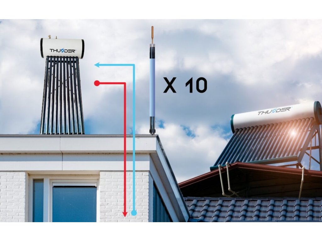 Nyomásos napkollektor, a tartály térfogata: 100 l, 150 l, 200 l, a vákuumcsövek száma 100 l: 10, a vákuumcsövek száma 150 l: 15, a vákuumcsövek száma 200 l: 20, cső mérete: szélesség: 58 mm, hosszúság: 1800 mm, belső tartály anyaga: rozsdamentes acél, külső tartály anyaga: horganyzott acél