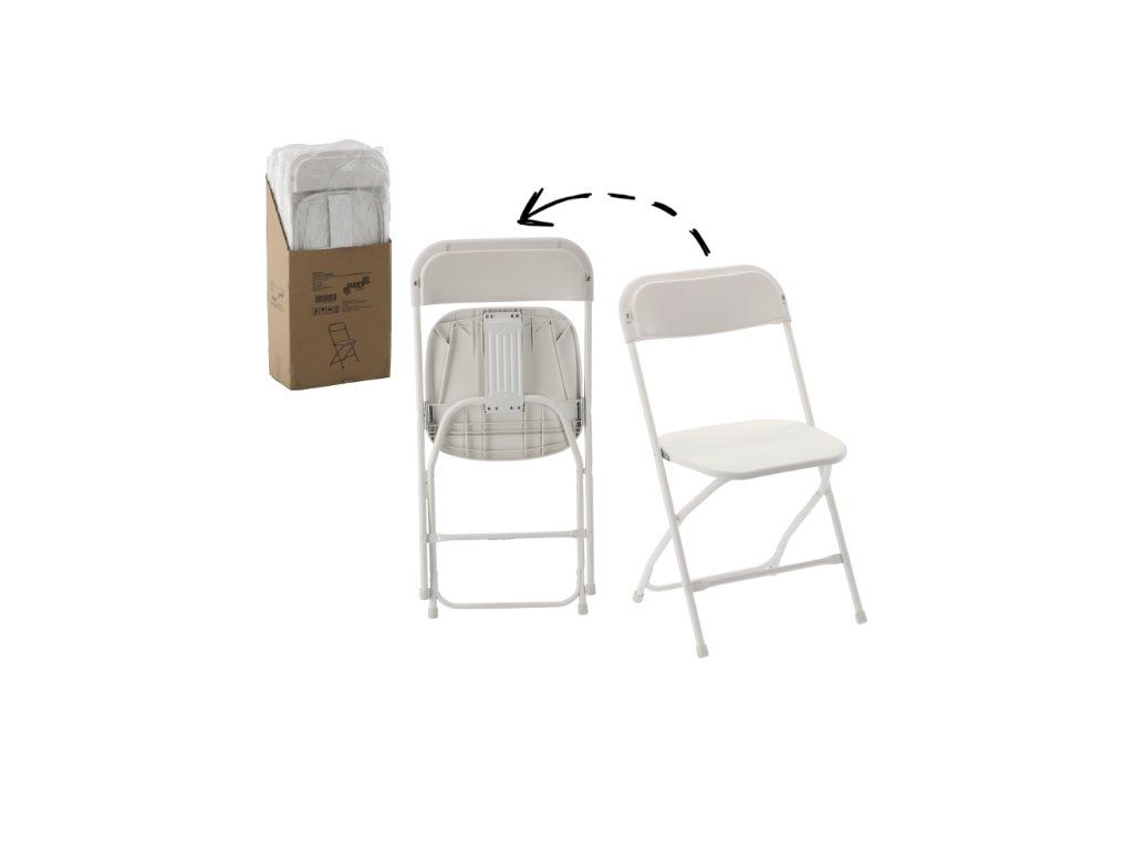 Nincs mindig elég helye minden vendég számára? A 120 kg teherbírású, acélvázas fehér összecsukható szék azonnali megoldást nyújt a családi ünnepségekre és kerti esküvőkre. Biztosítson szeretteinek stabil helyet az asztalnál, az esemény után pedig egyszerűen rakja el a székeket anélkül, hogy útban lennének a házban.