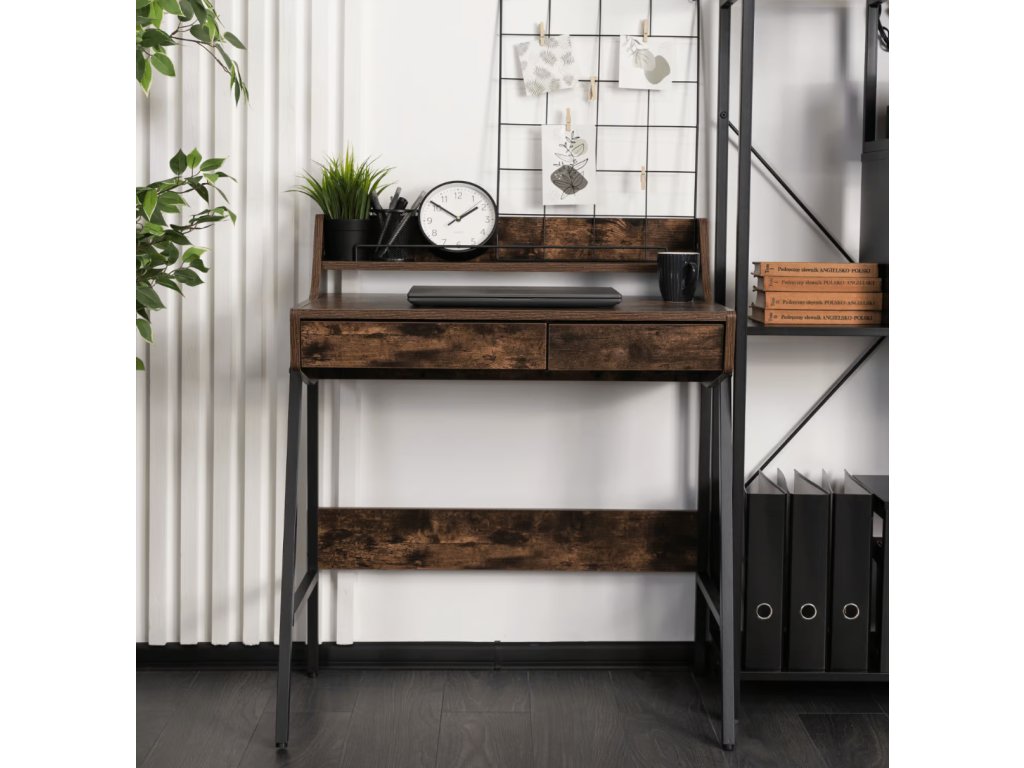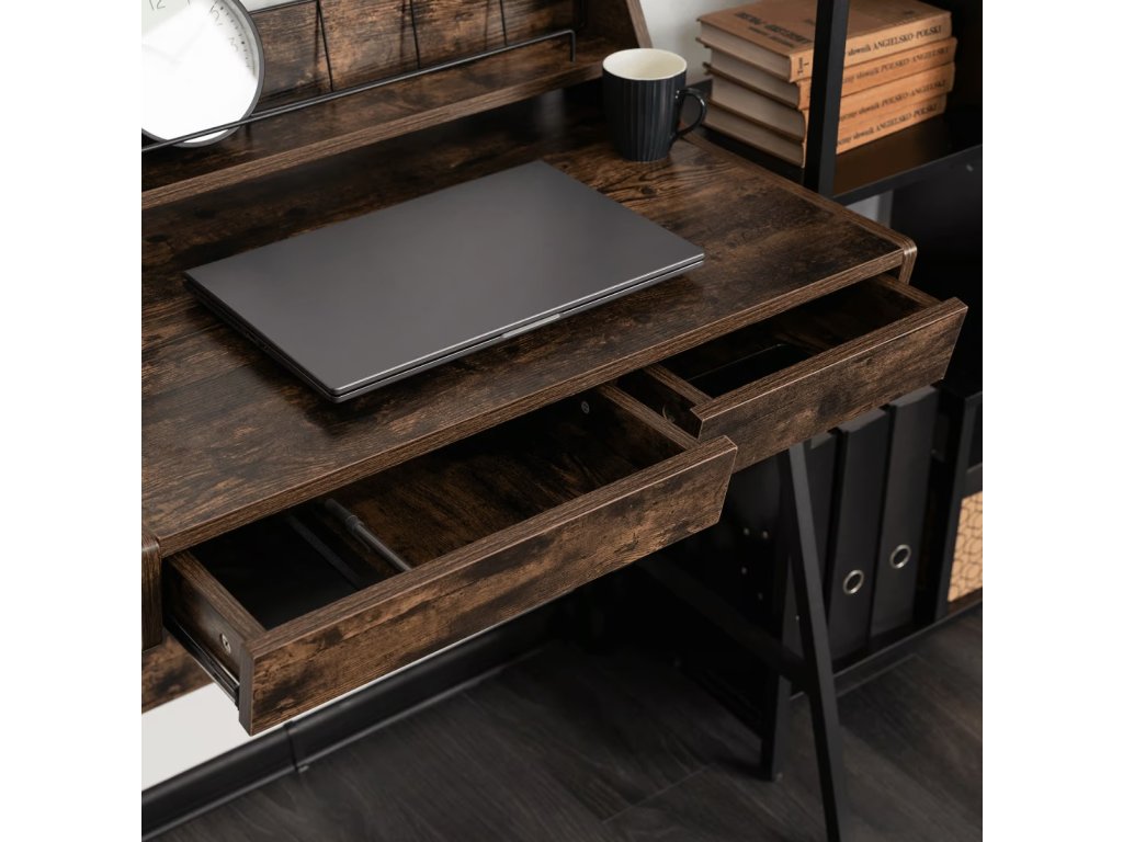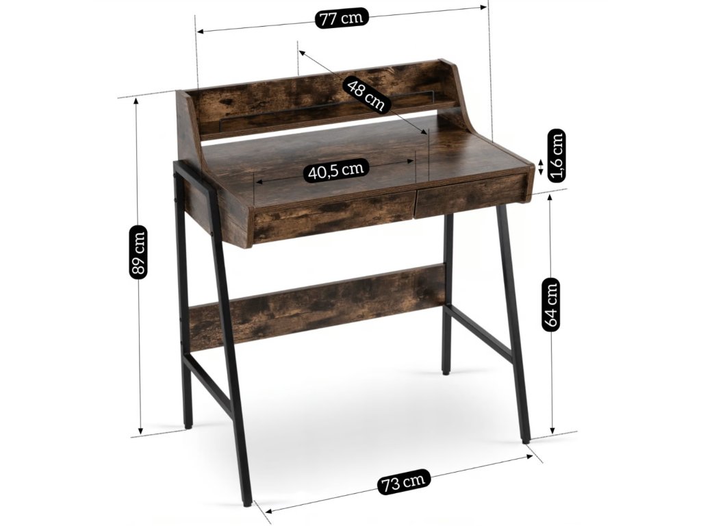 Két praktikus, fogantyú nélküli fiók – egy nagyobb és egy kisebb – biztosítanak helyet az irodai kellékek, dokumentumok vagy apróságok számára, amelyeket szeretne kéznél tartani.