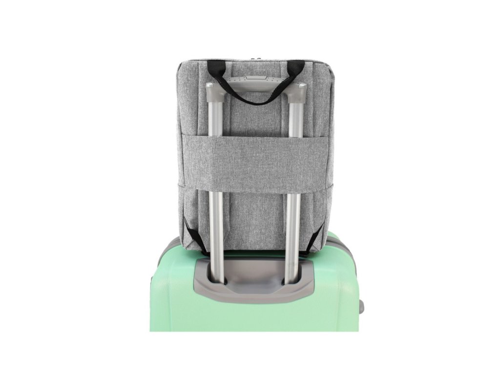 Repülőgépes hátizsák, magasság: 40 cm, szélesség: 30 cm, mélység: 20 cm, anyag: vízálló Codura 9500D, színek: szürke-fekete, szürke-kék, szürke-rózsaszín, szürke-zöld, állítható pántok, bőröndre rögzíthető pánt, térfogat: 24 l