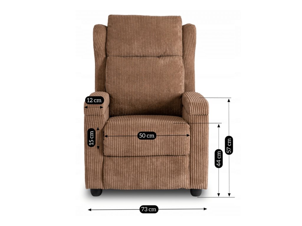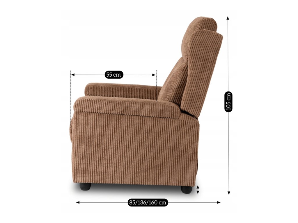 A lábtartóval ellátott fekvőfotel maximális kényelmet és stílust biztosít. Olyan mechanizmussal van felszerelve, amely lehetővé teszi a különböző pozíciók beállítását, fél fekvő pozíciótól egészen teljesen fekvő helyzetig. A kárpit kiváló minőségű anyagból készült, amely kellemes tapintású, tartós puha habbal van kitöltve, és ellenáll a bolyhosodásnak és a kopásnak. A fotel fém vázat kapott, amely biztosítja a stabilitást, és maximálisan 120 kg-ot képes elbírni.