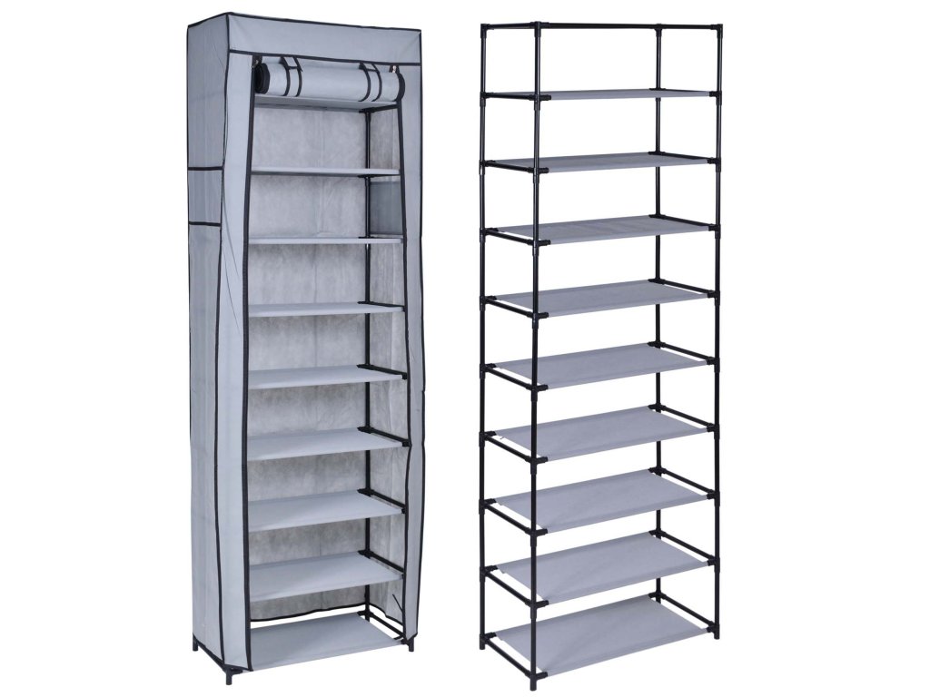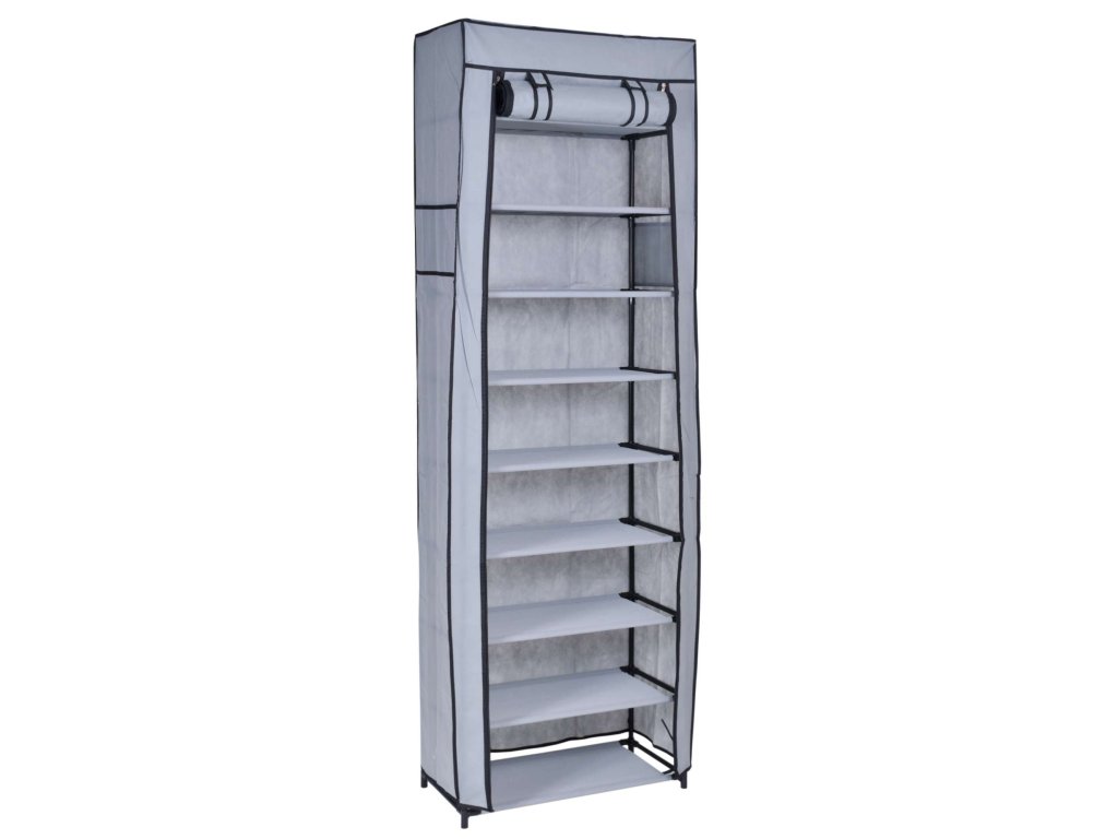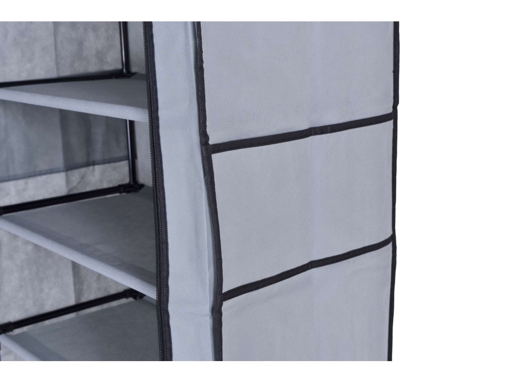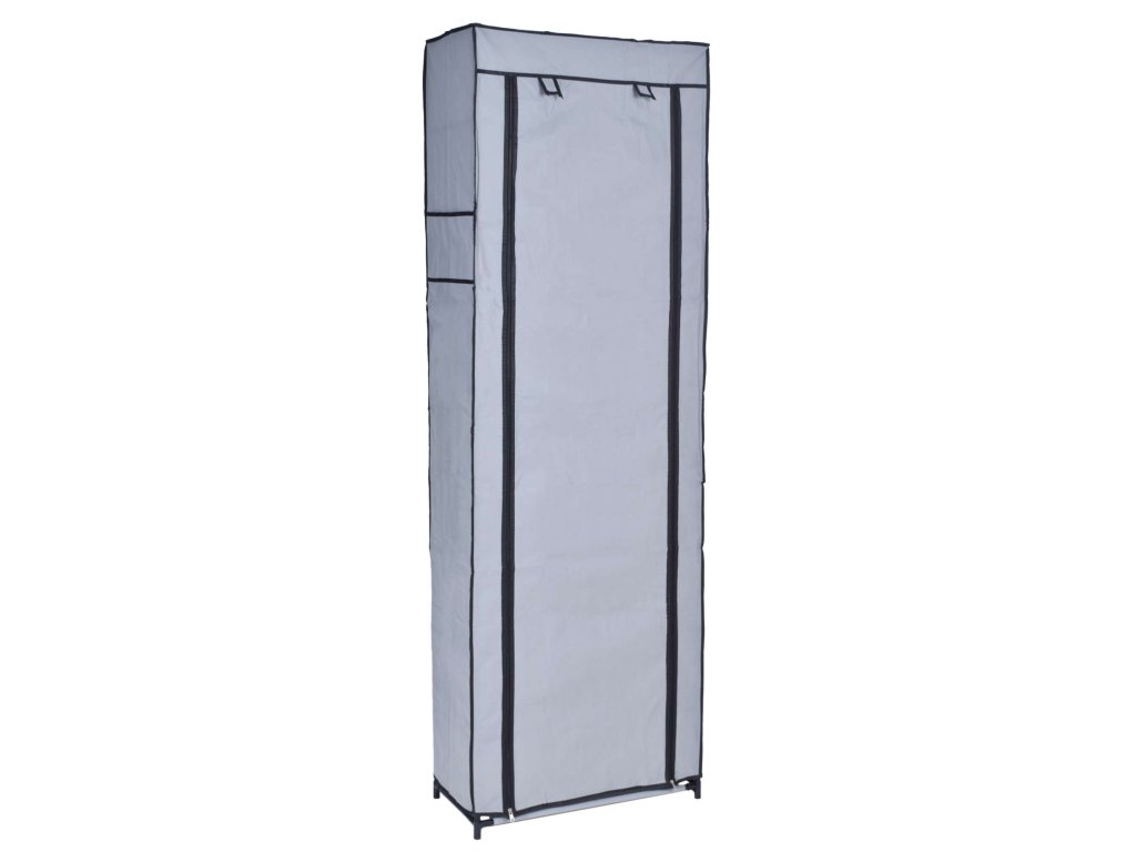 A textilszekrény vázát acélkeretek alkotják. A keretet öntapadós, kiváló minőségű nyomtatott anyaggal borítják. A könnyen tisztán tartható polcok ideálisak sapkák, sálak, kesztyűk vagy más kisebb tárgyak tárolására. A ruhákat a szekrény fő részében lévő fogasokra is fel lehet akasztani. A könnyű és robusztus szerkezet bármikor összecsukható vagy mozgatható.